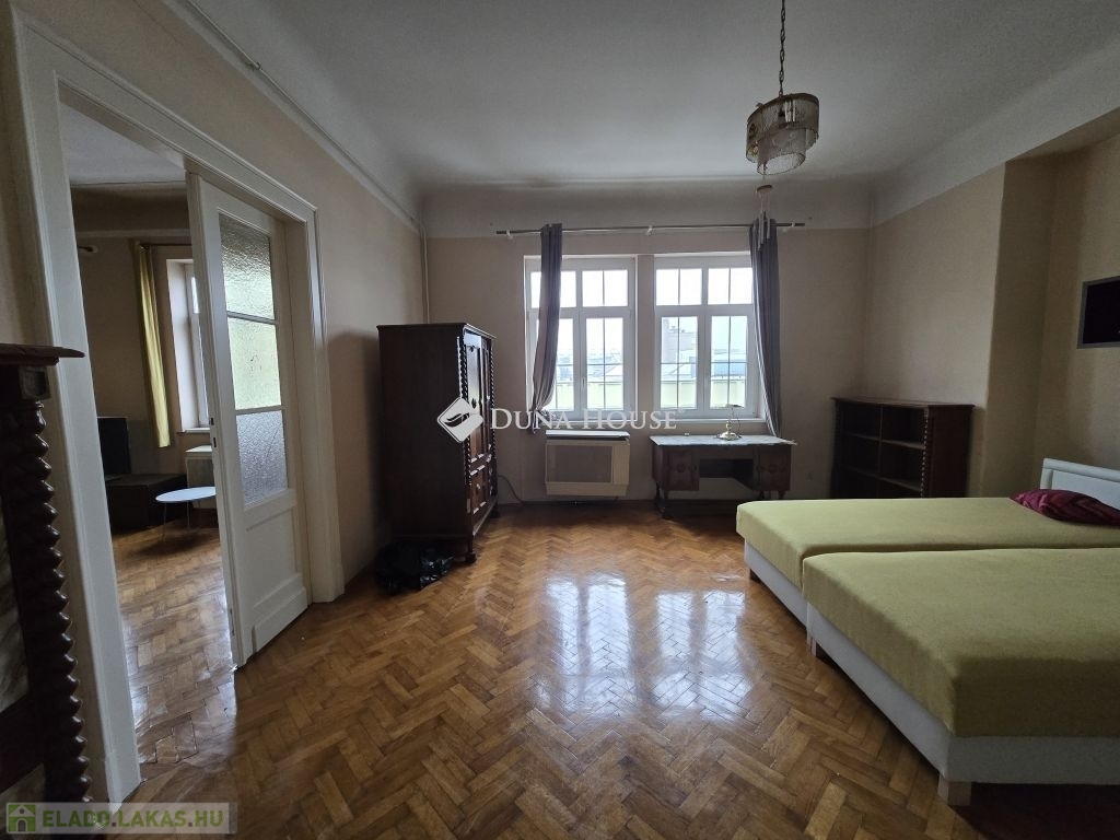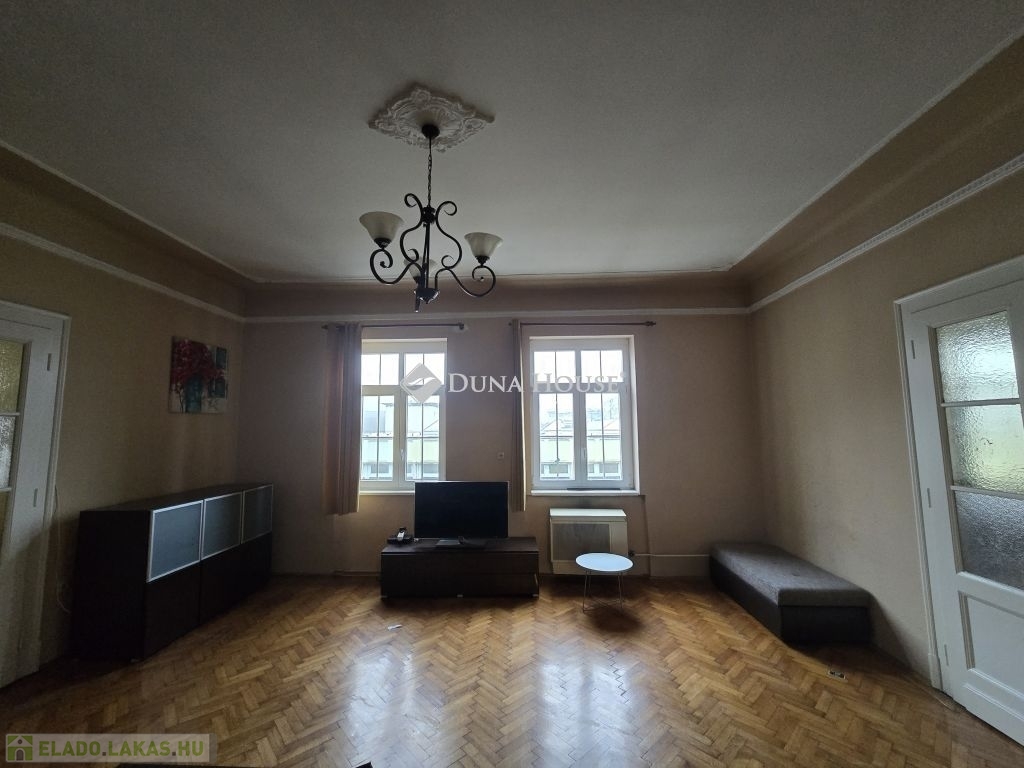 Eladó nagypolgári lakás Pécs belvárosának központjában!Pécs belvárosának szívében kínálom megvételre ezt a 138 m²-es, nagy terekkel rendelkező, világos nagypolgári lakást egy mindössze nyolc lakásos társasházban. A közel 3,2 méteres belmagasság és az eredeti parketta igazán impozáns hangulatot ad az ingatlannak.A lakás három, egyenként közel 30 m²-es, utcára néző nagy szobából áll, amelyek egymásból is nyílnak, de külön is megközelíthetők. A tágas hall többféle funkcióra alkalmas (nappali, dolgozó vagy központi élettér), emellett nagy méretű konyhaétkező, egy kisebb szoba (korábban cselédszoba), fürdő WC-vel, külön vendég wc, előtér és egy kis erkély is tartozik a lakáshoz.Az ingatlan költözhető állapotú,műanyag nyílászárós jelenleg gázkonvektoros fűtésű, világos és jó elosztású. A klasszikus nagypolgári hangulat és a hatalmas terek kiváló alapot nyújtanak egy igényes felújításhoz, amelyből egy igazán elegáns, belvárosi otthon alakítható ki.Ideális választás nagyobb családoknak, tágas, jól alakítható lakást keresőknek vagy azoknak, akik a belváros központjában szeretnének egy különleges hangulatú ingatlant.A lakáshoz tartozik még egy tároló, közös padlástér és a belső udvarban egy saját gépkocsiparkoló.A lépcsőház tiszta, rendezett a lakóközösség kiváló. Az ingatlan tehermentes, gyorsan költözhető.További kérdéseivel és személyes megtekintésért várom hívását!