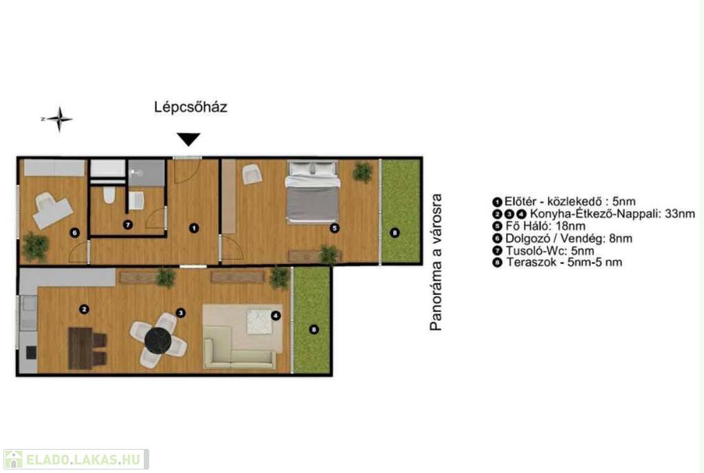 ℹ️ A lakás egy 3 emeletes szigetelt társasház 3. emeletén található, 2 erkéllyel rendelkezik, rendkívül csendes és napfényes, fantasztikus panorámával a városra!