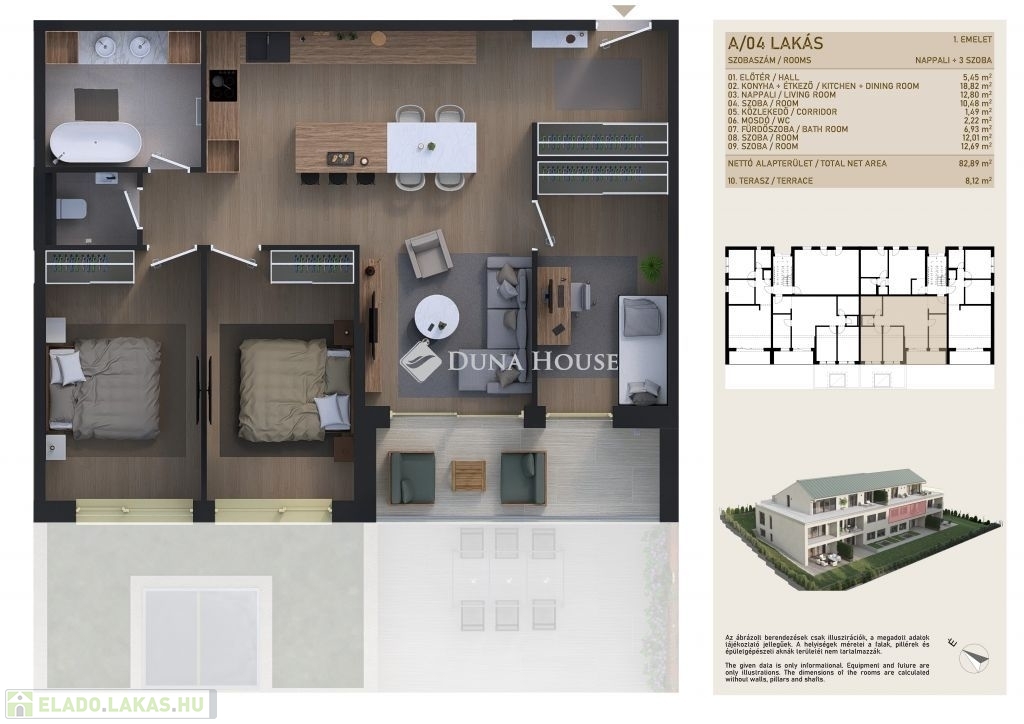 Az ingatlanban 48-119 nm közötti méretekben, a 1 szoba+nappalistól a 4 háló+nappalis elosztásig választhatunk, mindegyik lakáshoz saját tágas terasz is tartozik. A 2. emeleten 70 nm-es terasszal rendelkező PENTHOUSE LAKÁSOK kerülnek kialakításra, melyek igény szerint megoszthatók. A lakások minőségi burkolatai-szaniterei jelenleg egyedi igények szerint válaszhatók! Lehetőség van 22db teremgarázshely megvásárlására is nettó 8 M Ft/db áron!