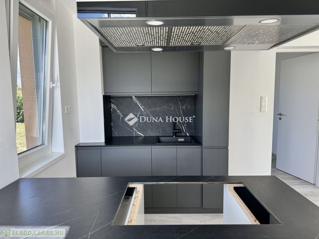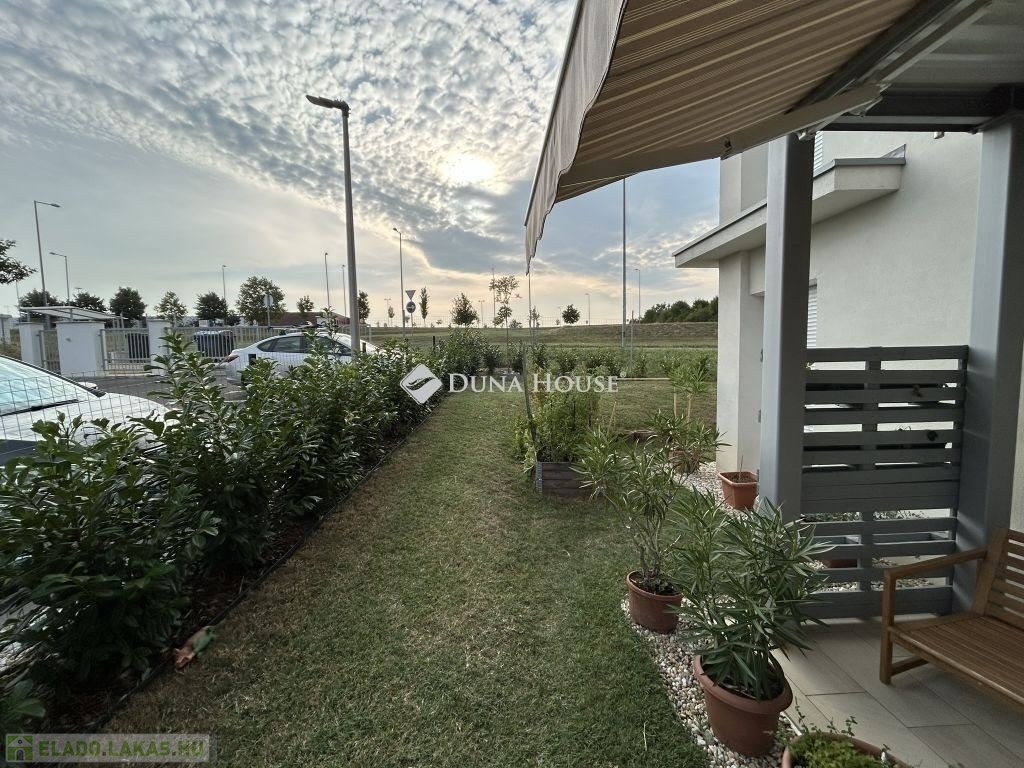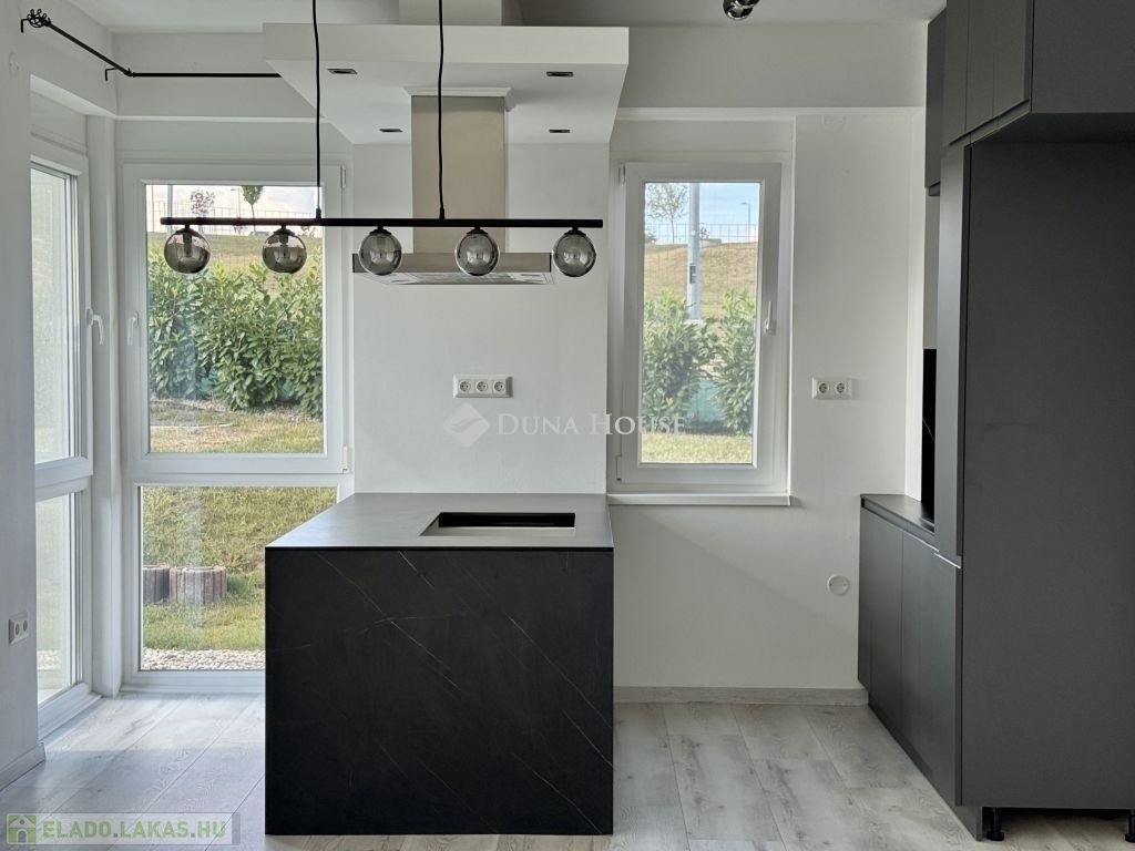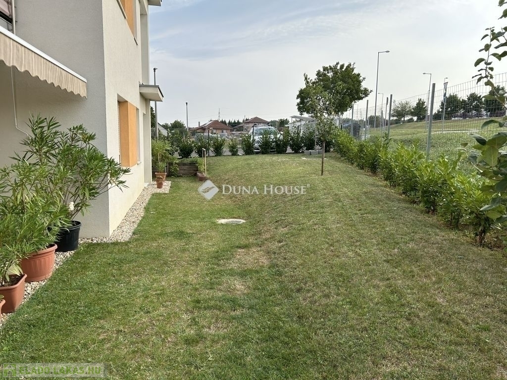 Eladó újszerű kertvárosi lakás, saját parkosított kertkapcsolattal!!!!!Pécs egyik csendes, zöldövezeti részén kínálunk megvételre egy 2023-ban átadott 92 m²-es földszinti lakást, amely minden igényt kielégítő belső kialakítással és kivételes külső adottságokkal rendelkezik.Kertkapcsolat és extra területekA lakáshoz tartozik egy 240 m²-es kizárólagos használatú, parkosított kert, benne egy könnyűszerkezetes, 10 m²-es kisházzal ideális tárolónak vagy hobbihelyiségnek.Két kényelmes terasz, mindkettő beépített, kinyitható árnyékolóval.Belső elrendezés 3 hálószoba Tágas nappali-konyha-étkező egy légtérben 2 igényes fürdőszobaPrémium felszereltség FAP olasz hidegburkolatok Hansgrohe falba süllyesztett csaptelepek Blanco gránit mosogató és csaptelep a konyhában Minőségi német konyhabútor kompakt munkapulttal, konyhaszigettel Új, elektromos fehér alumínium redőnyök minden ablakon Hőszivattyús padlófűtés + fancoil hűtés a kellemes klímáért egész évben Alacsony rezsiköltségek, energiahatékony, és letisztult, igényes belső terek.Elhelyezkedés szempontjából is ideális:A belváros autóval mindössze 7 perc, de a tömegközlekedés is kiváló. A mindennapi ügyintézéshez szükséges szolgáltatások csupán egy percre találhatók: Tesco, Rossmann, gyógyszertár, minden gyalogosan is gyorsan elérhető.