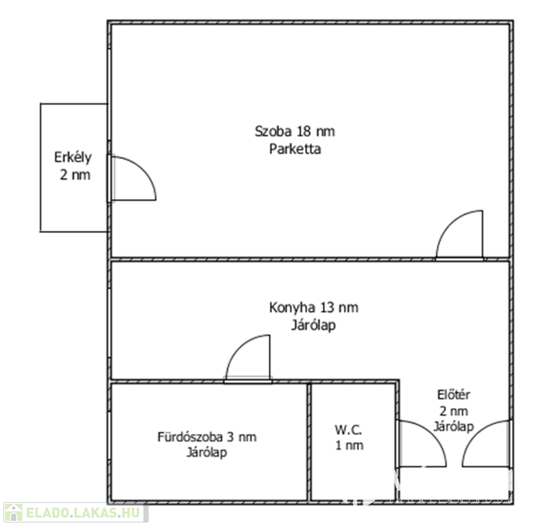 Helyiségei: 1 szoba, konyha-étkező, fürdőszoba, külön nyíló W.C., előszoba, erkély.