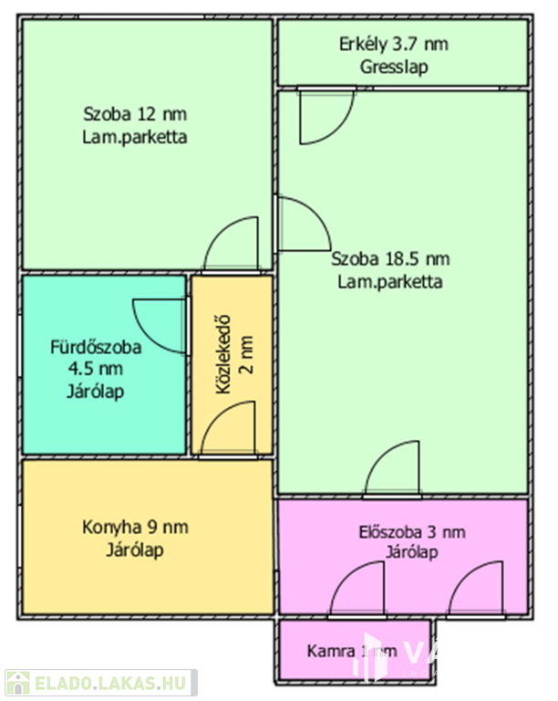 Helyiségei: 2 szoba, konyha, kamra, előszoba, fürdőszoba, közlekedő, erkély.