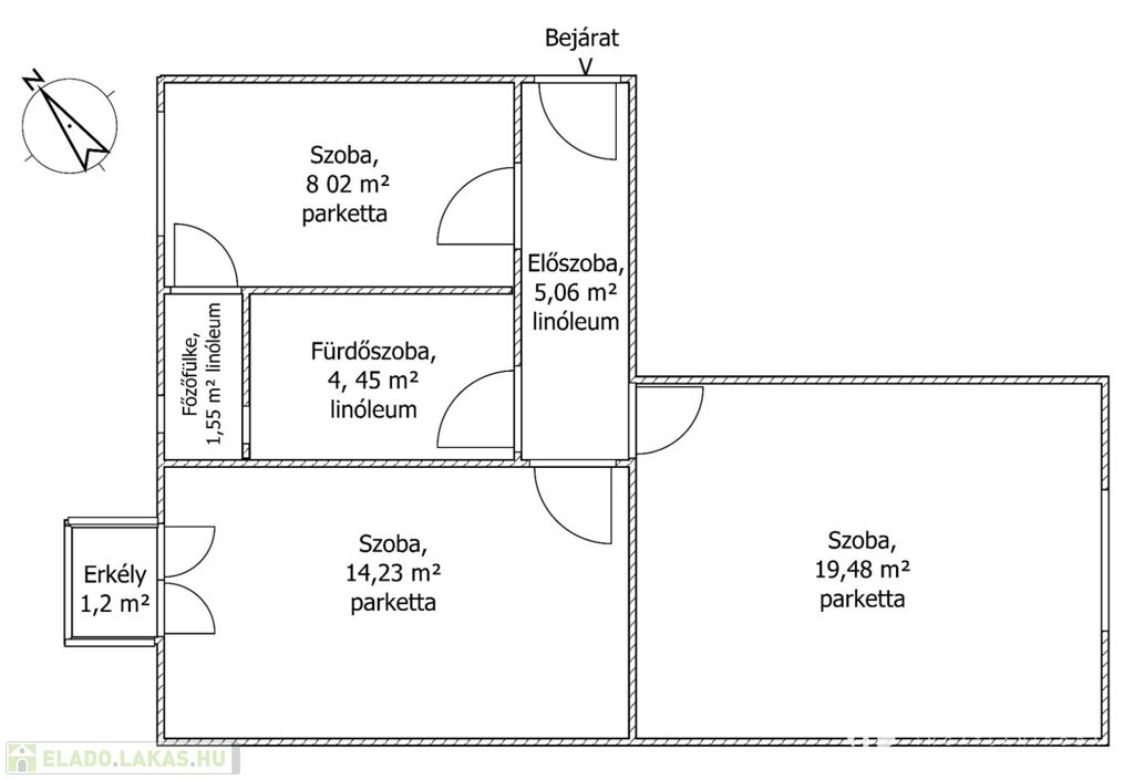 Kiváló elosztás, különnyíló szobák.