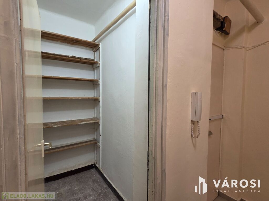 A lakás két szobás, nagy konyhája van, melyhez tároló helyiség is tartozik. A fürdőszobában kényelmesen elfér a mosógép is. A közlekedőben plafonig érő, 2,3 méter hosszú, 60 cm mély beépített szekrény biztosít bőséges tároló helyet az itt lakóknak. A lakáshoz tartozik egy erkély is, ami biztonsági ráccsal védett a földszinti elhelyezkedés miatt. Az ingatlan jelenleg berendezett, ezért kiadásra is alkalmas, befektetőknek is jó lehetőség. A nyílászárók eredeti fa nyílászárók. A fűtés gázkonvektoros, a melegvíz ellátásról átfolyós rendszerű gázüzemű vízmelegítő gondoskodik. A lépcsőház tiszta, rendezett, kaputelefonos beléptetőrendszerrel védett. A szomszédok barátságos, csendes emberek.