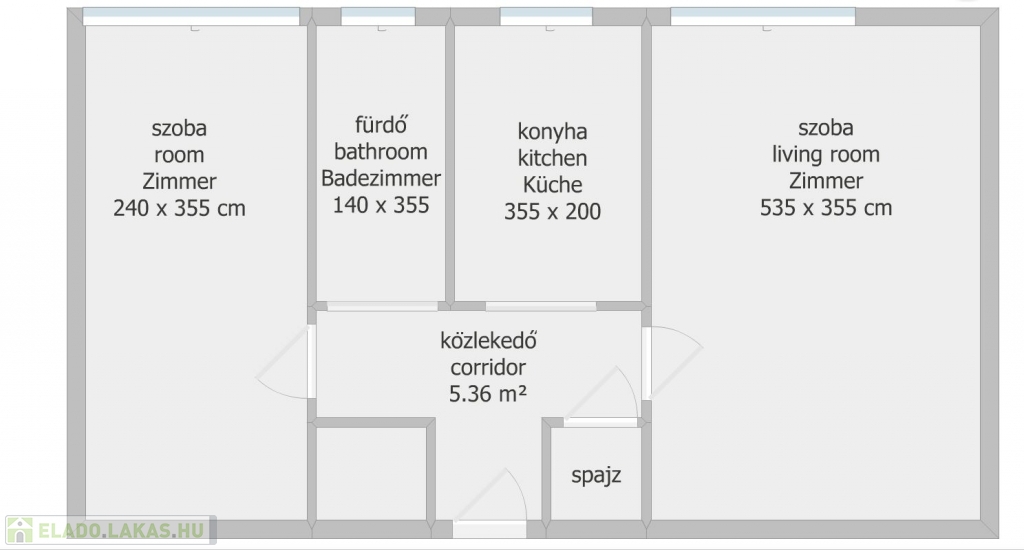 A helyiségek elrendezése a mellékelt alaprajz alapján.