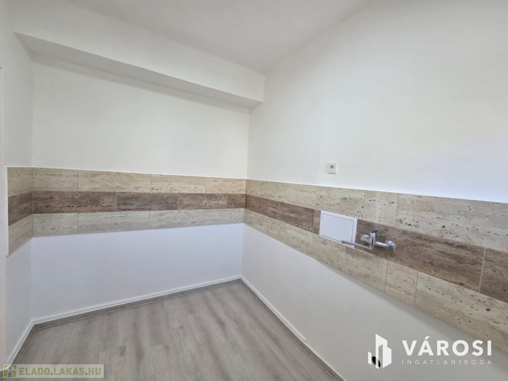 A mosókonyhában a mosógépnek a víz és szennyvízcsatlakozás kiépítésre került.