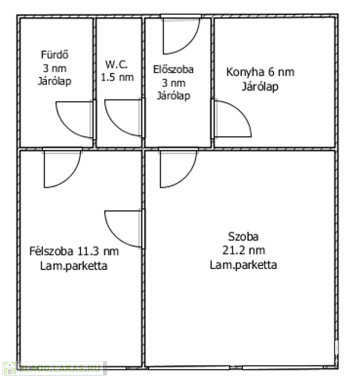Az ingatlanban nappali, 1 hálószoba, konyha, előszoba, fürdőszoba, külön nyíló W.C. található.