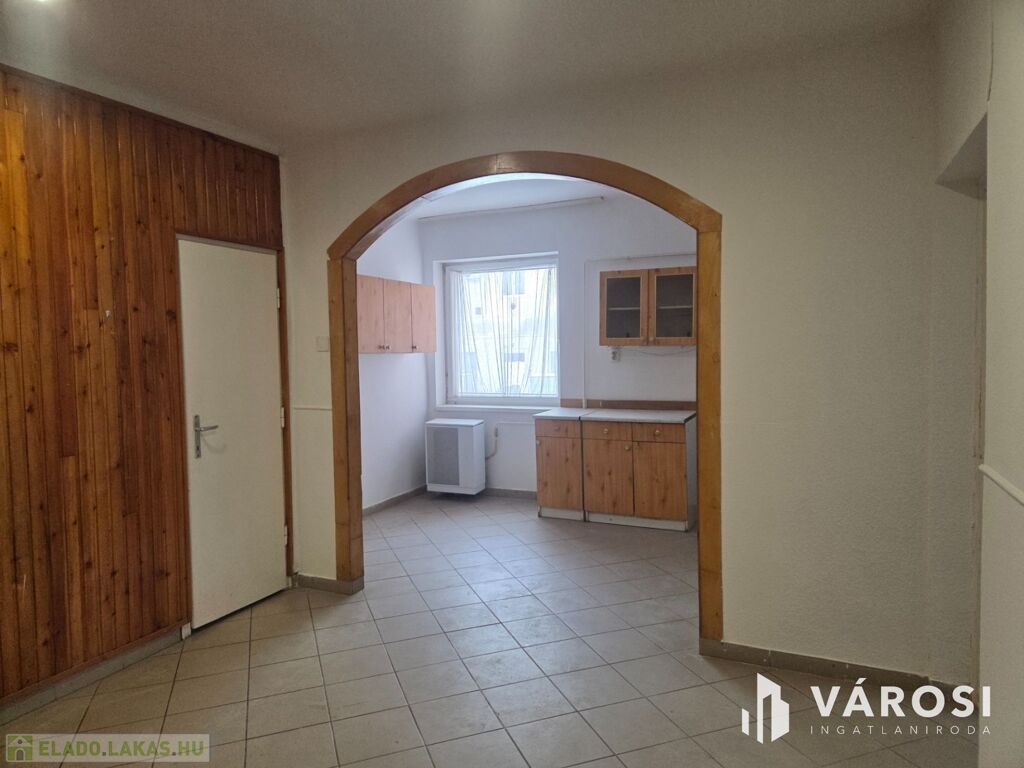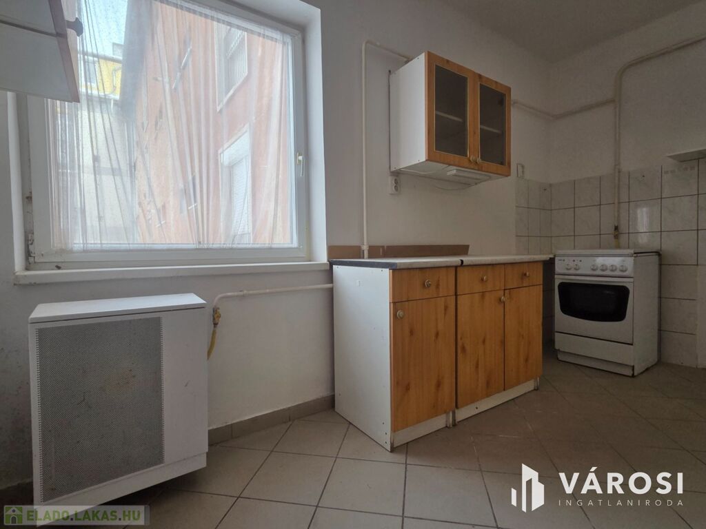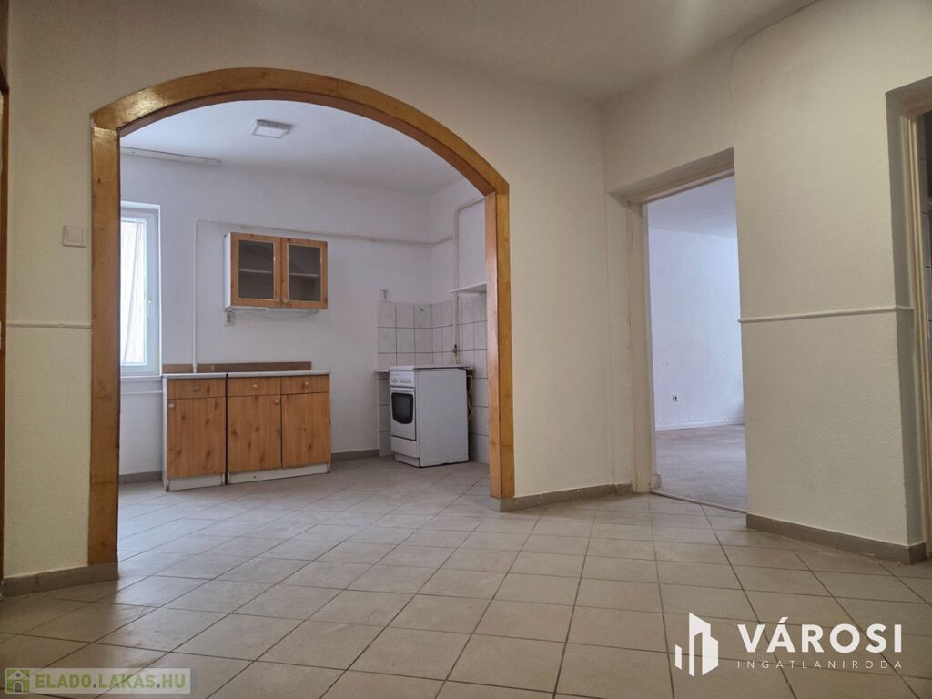 Eladó Salgótarjánban a Vásártéren, egy kétszobás, tágas nappalival és amerikai konyhával rendelkező lakás.