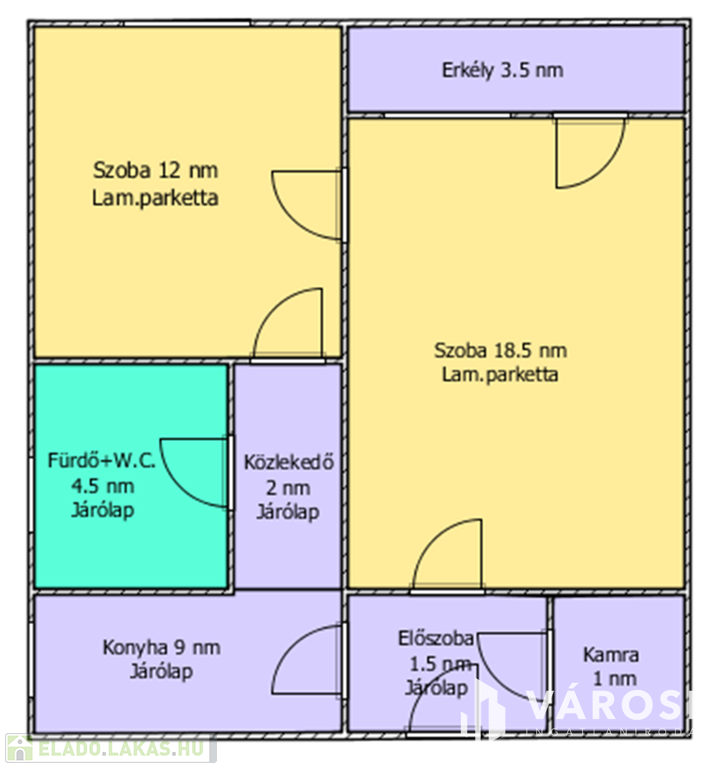 Az ingatlanban 2 szoba, konyha, kamra, fürdőszoba, előszoba, erkély található.