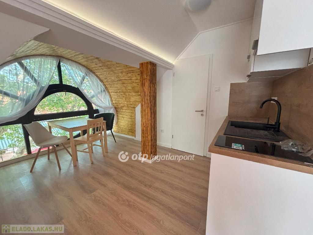 Siófok közvetlen belvárosában, frekventált helyen, páratlan, egyedi befektetési lehetőség! Két garzon lakás + galéria, 1 szgk számára fenntartott parkolóhely zárt parkolóban, ez mind a vételár részét képezi! Egy zárt lépcsőházba lépve egy galérián keresztül jutunk a két tetőtéri lakásba (37m2 és 33 m2), mely teljes egészében megszépült és megújult 2025. július közepén. A lakások egyedi mérőórákkal rendelkeznek, a hűtésről és fűtésről klíma gondoskodik, a fürdőszobákban pedig elektromos padlófűtés. Az igényesen berendezett és felújított ingatlan a legtökéletessebb választás nyaralásra, nyaraltatásra, állandó lakhatásra. Egyetlen gipszkarton fal elvételével pedig akár egy nagyobb, 70 m2-es lakás, vagy iroda is kialakítható belőle. Értékét tovább növeli a kb. 7,5 m2-es galéria, mely vállalkozások számára könnyedén egy recepcióvá, egy váróvá, ruhatárrá válhat. Elhelyezkedését tekintve a lehető legjobb helyen található: étterem, bevásárlási lehetőség, pláza, mind egy karnyújtásnyira, a Balaton-part gyermekek számára is elérhető távolságban. Mindez a vasút város felé eső oldalán.