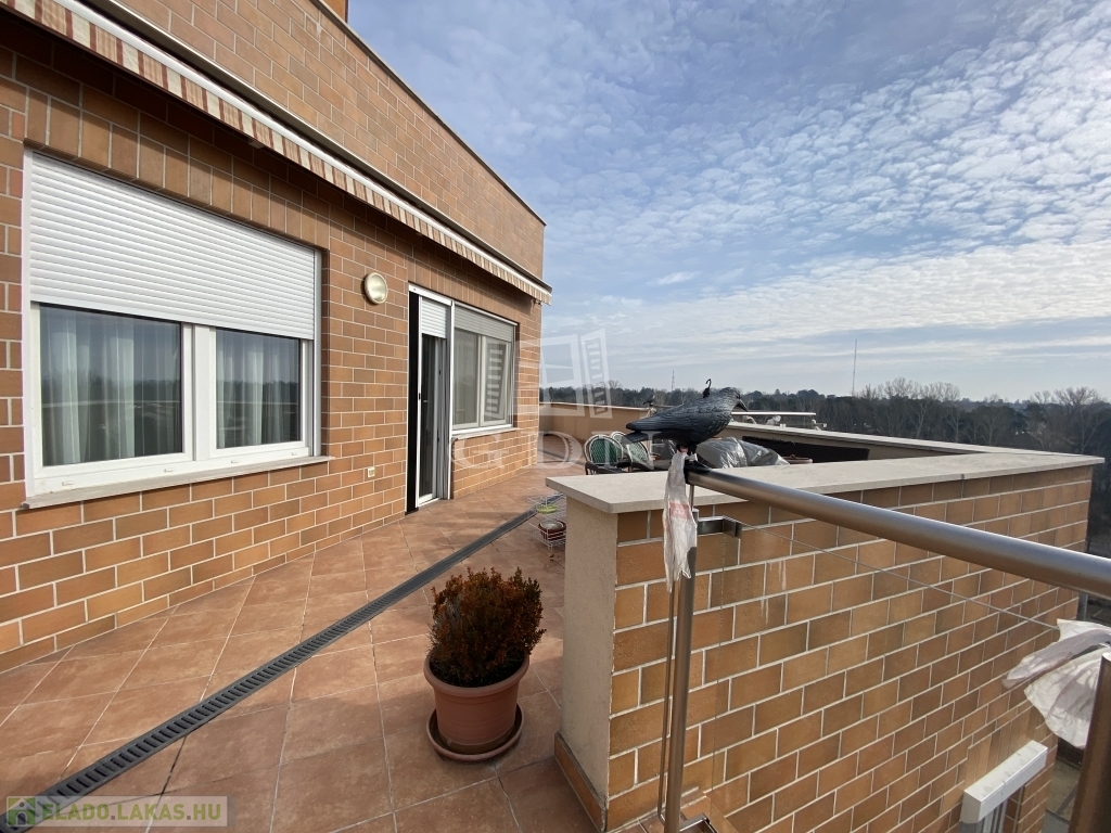Siófok, Aranypart legszebb lakóparkjában, liftes házban 7.emeleti penthouse lakás eladó 50 négyzetméteres panorámás terasszal!