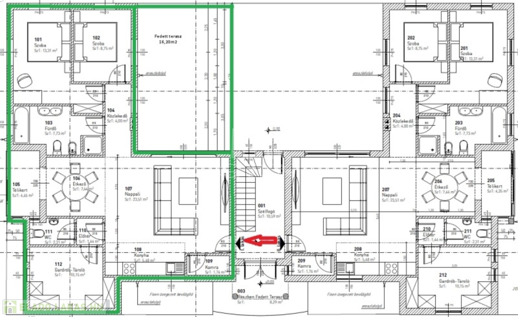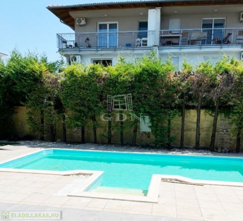 A 6 lakásos társasház rendezett, közös használatú udvarán található medence, és napozó terasz. A lakásokhoz 2 saját autóbeálló tartozik, melyek megvásárlása kötelező, ára 2x4.000.000,- Ft.