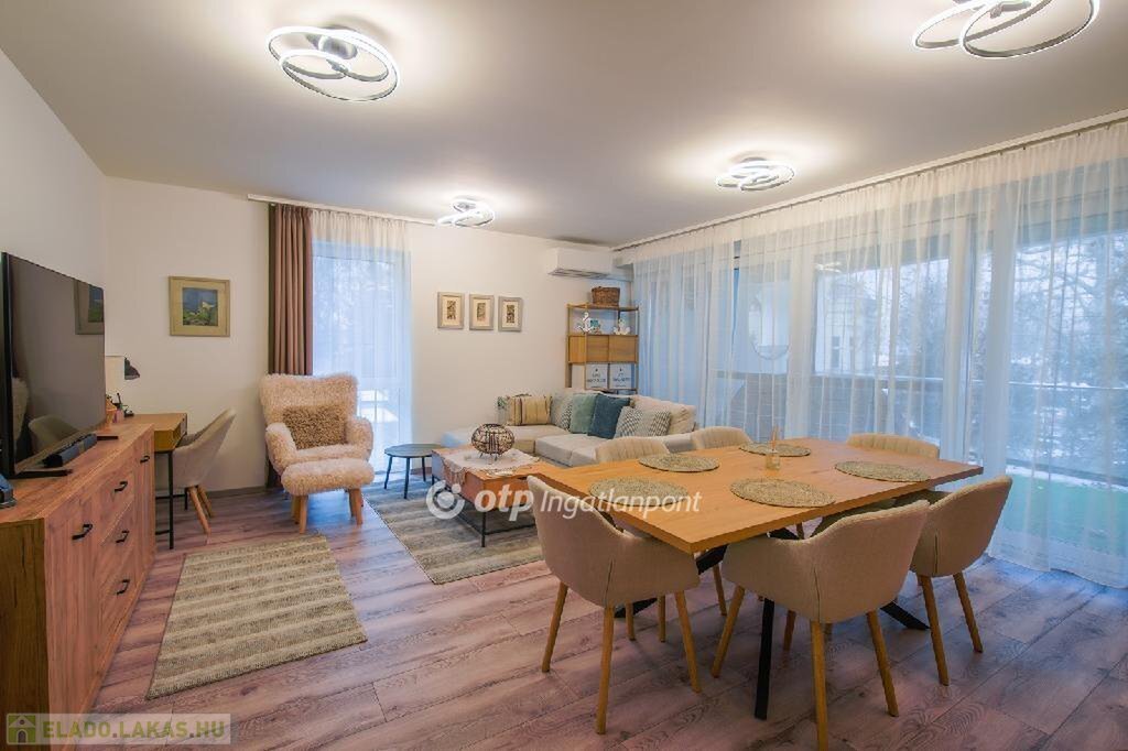 A komfortérzetről a korszerű hőszivattyús rendszer, padlófűtés, valamint klímaberendezés gondoskodik, így a lakás nyáron hűvös, télen gazdaságosan fűthető.