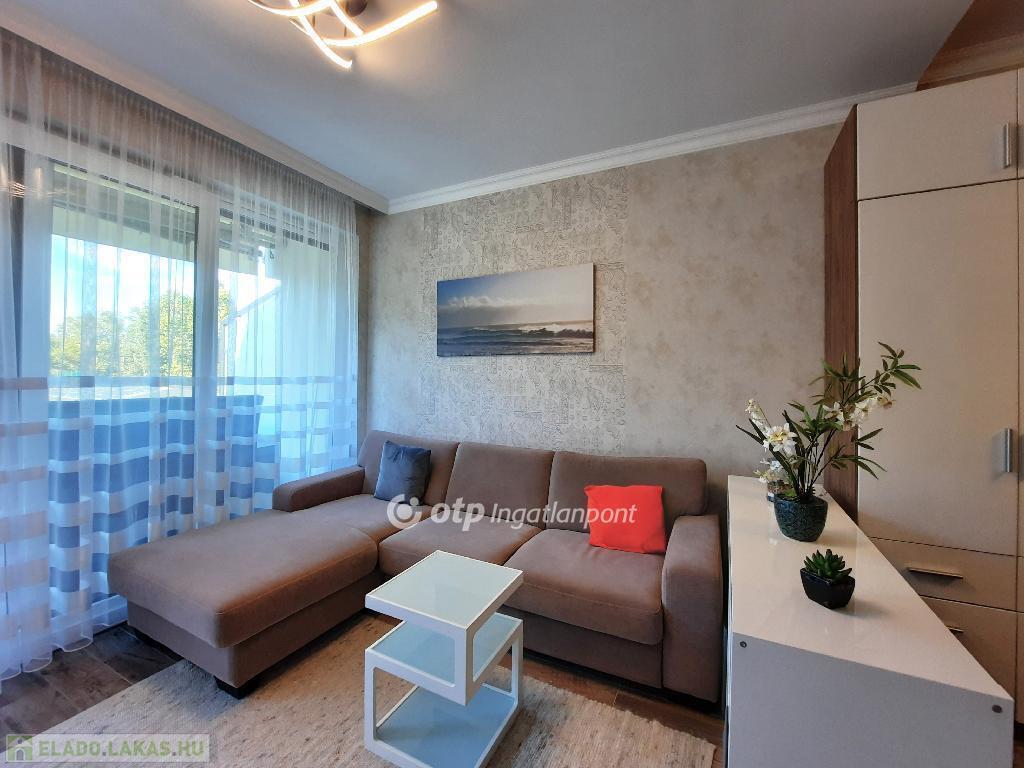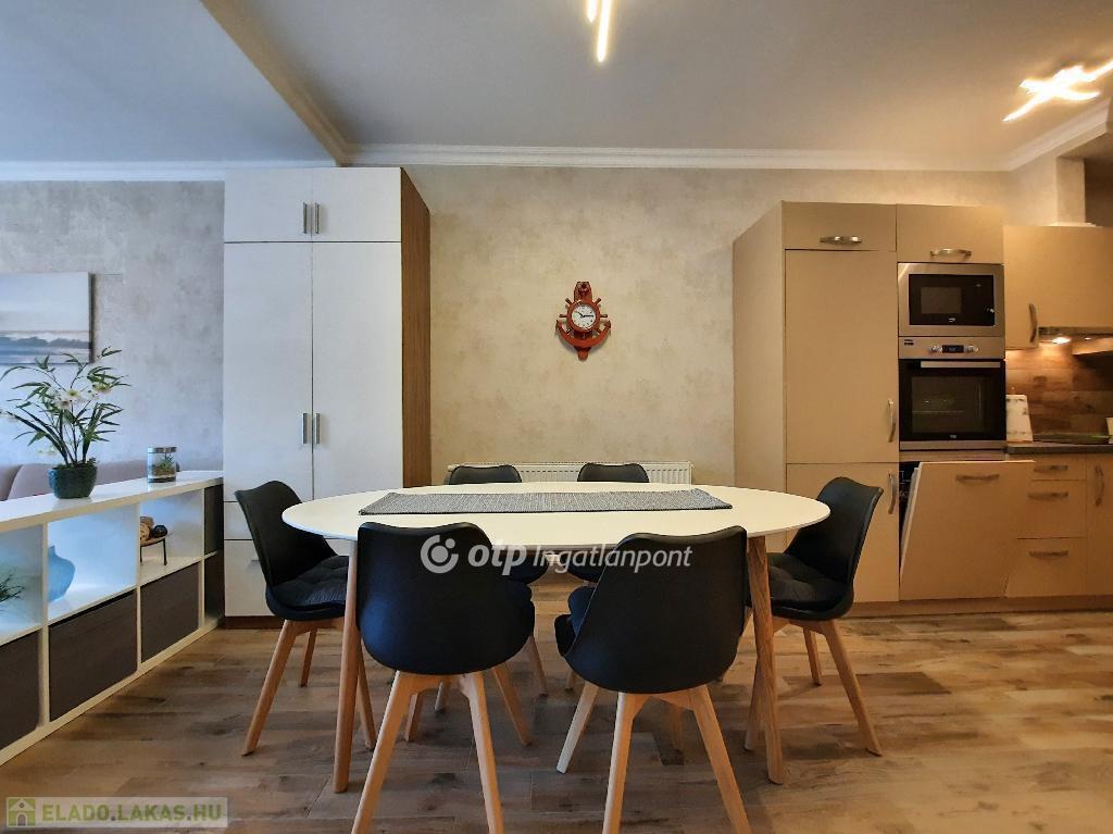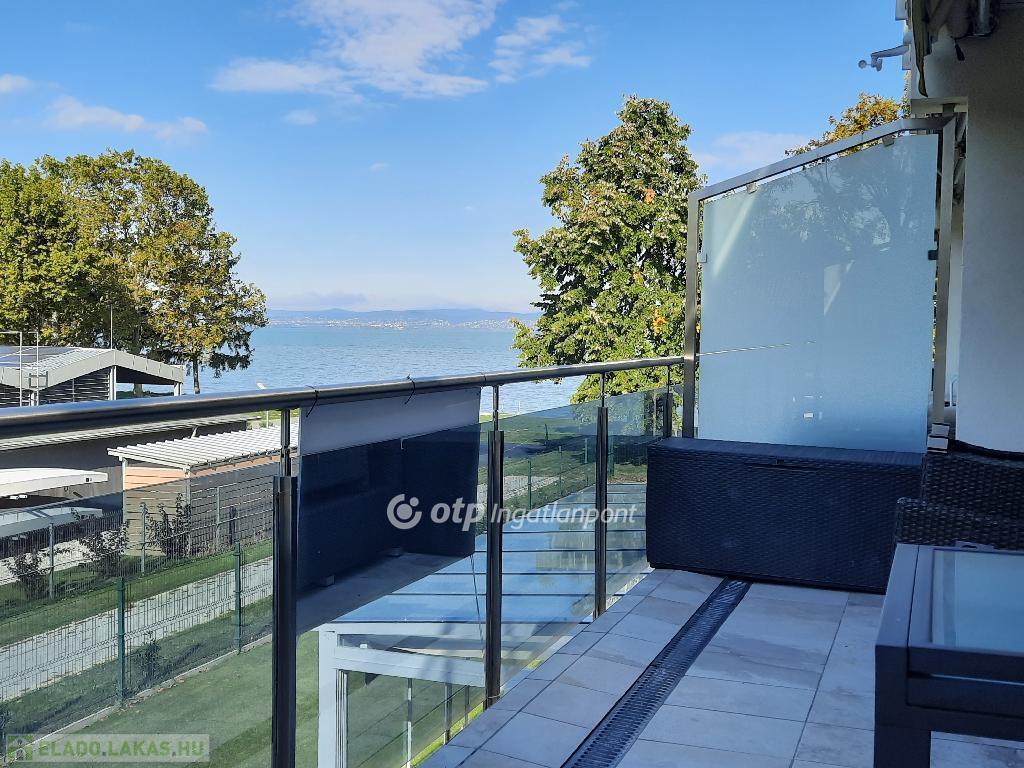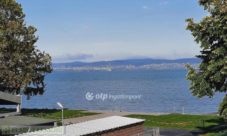 Balaton déli part Siófok 66 m2 lakás eladó. A balatoni panorámás ingatlan az Ezüstparton, vízparti társasüdülő 1. emeletén helyezkedik el, nyugati tájolással. A magas minőségű belsőépítészeti megoldásokkal, teljesen felszerelt és gépesített konyhabútorral, minden bútorral, berendezéssel együtt kerül értékesítésre, melyet a vételár tartalmaz. A bekerített területen belül a lakáshoz tartozik egy felszíni parkolóhely, ennek árát nem tartalmazza a hirdetési ár. Az első emeleten a lakáshoz vásárolható egy 2,7 m2-es tároló. Az emeleti lakás megközelítése lifttel biztosított. A lakótérhez és a nyugati oldali hálóhoz kapcsolódó 12 m2-es erkélyről csodálatos panoráma látható. A társasüdülő környezete parkosított, az építészeti megoldások igényes kivitelűek. A társasüdülő saját kijárattal rendelkezik a szabad strandra. A fűtés és meleg víz ellátás kondenzációs kombi gázkazánról megoldott, a lakótér klimatizált. A homlokzati nyílászárók korszerű szerkezetek, elektromos redőnyökkel kiépítve. Bővebb információért keressen telefonon!