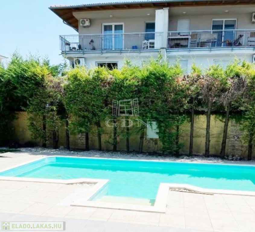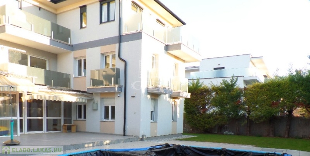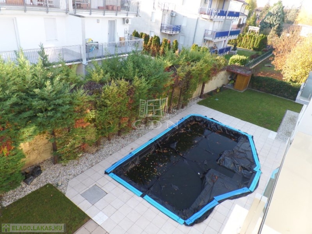 A 6 lakásos társas ház rendezett, közös használatú udvarán található medence, és napozó terasz. A lakásokhoz 2 saját autóbeálló tartozik, melyek megvásárlása kötelező, ára 2x4.000.000,- Ft.