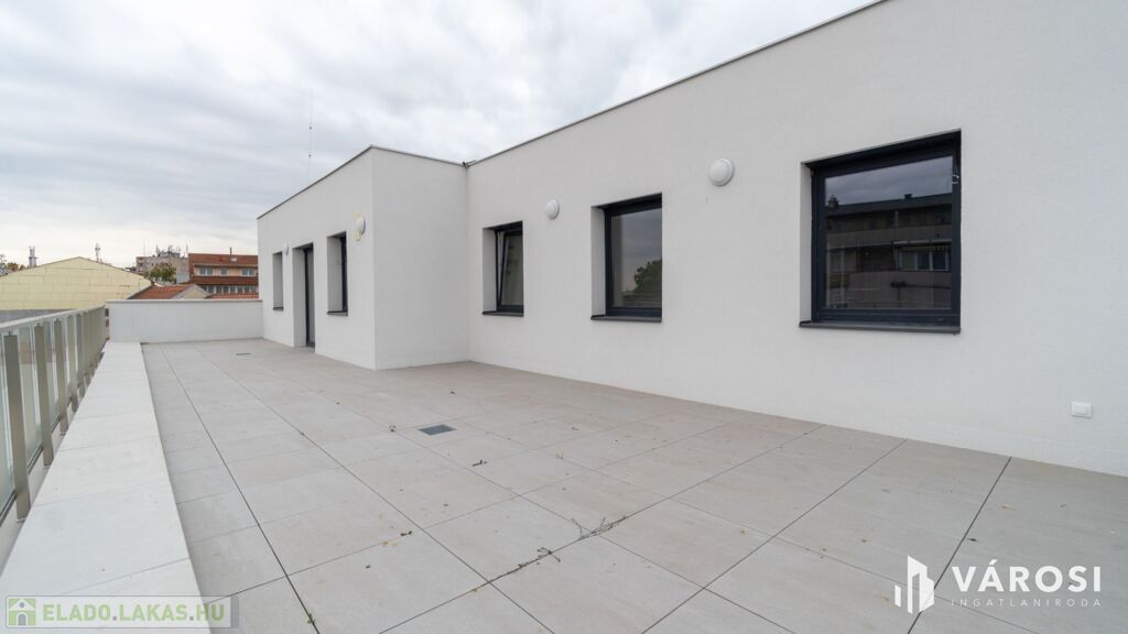 - Nettó alapterület: 115,19 m² + 69,61 m² saját tetőterasz, amely közvetlenül a belső udvarra néz, látszódik róla a víztorony is