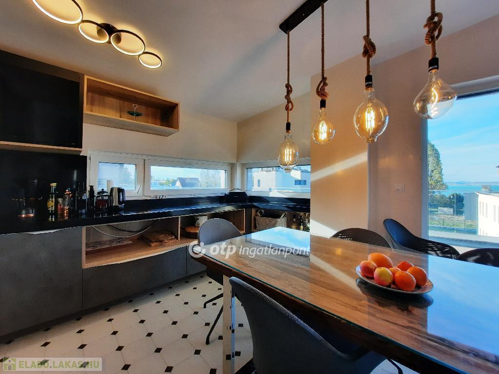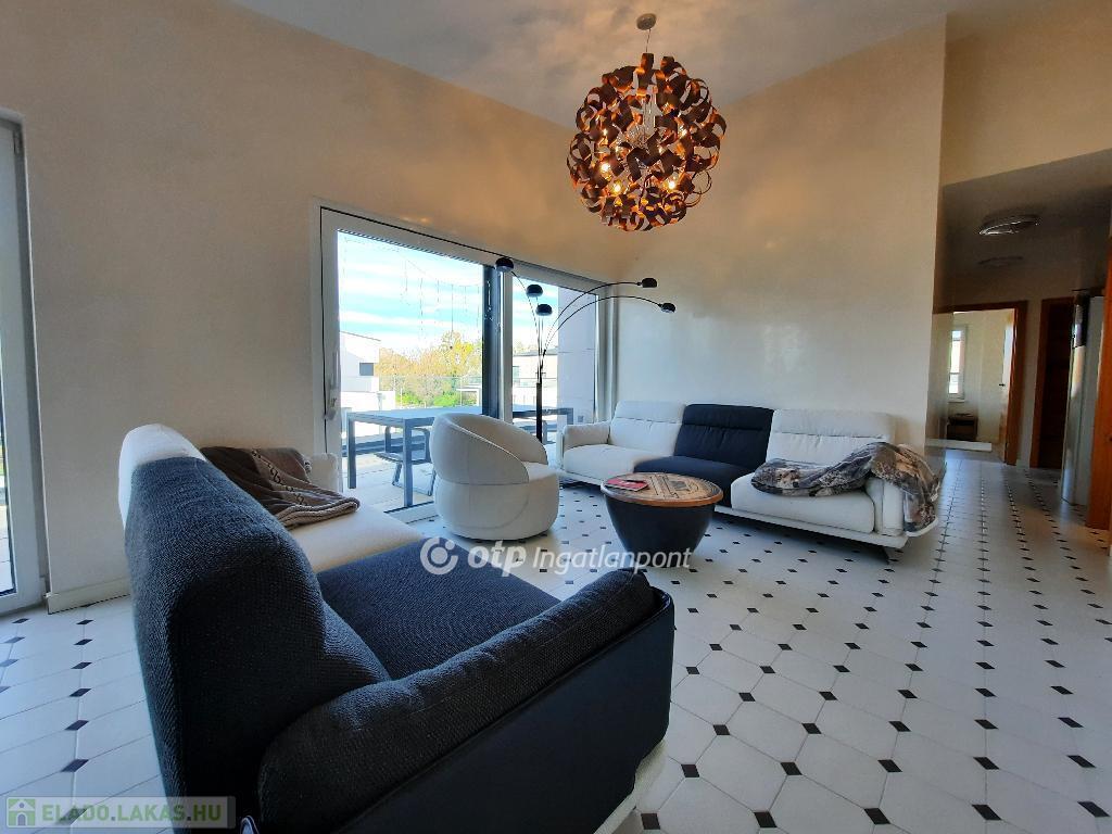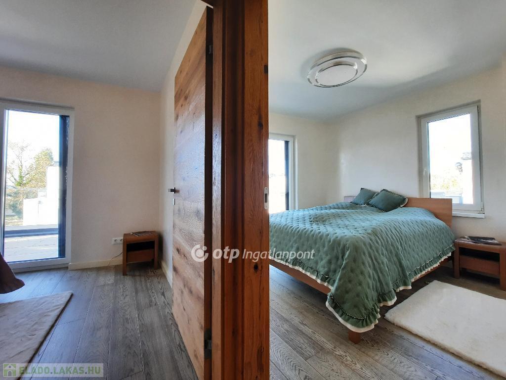 Balaton déli part, Siófok, 91 m2 panorámás penthouse lakás 68 m2 tetőterasszal eladó. Az igényes kialakítású ingatlan Széplak városrészben helyezkedik el egy vízparti, 6 épületből álló lakóparkban. A liftes, földszint + 2 emeletes épületben 5 lakás került kialakításra, a legfelső szintet teljes egészében ez az egyetlen lakás foglalja el. A lakásban egyedi belsőépítészeti megoldások készültek, kiemelten: magas minőségű beépített konyhabútorral, gépekkel, egyedi színvonalas felületképzésekkel és belső ajtókkal kivitelezve. A fűtés - hűtés, meleg víz előállítás a lakáshoz egyedi hőszivattyúról megoldott, mennyezet hűtéssel-fűtéssel, kiegészítő klímaegységgel. A 2022-ben átadott lakópark felszín alatti részén közös kerékpártároló, teremgarázs, és külön tárolóhelyiségek épültek. A szépen gondozott, parkosított kertben játszótér és medence szolgálja a lakók kikapcsolódását. A társasháznak 3 irányban van közút csatlakozása, ebből az egyik közvetlenül határos a szabad stranddal. A lakáshoz pluszban vásárolható 2 db teremgarázs-hely és 2 db 3 m2-es tároló. Részletekért, megtekintésért keressen telefonon!