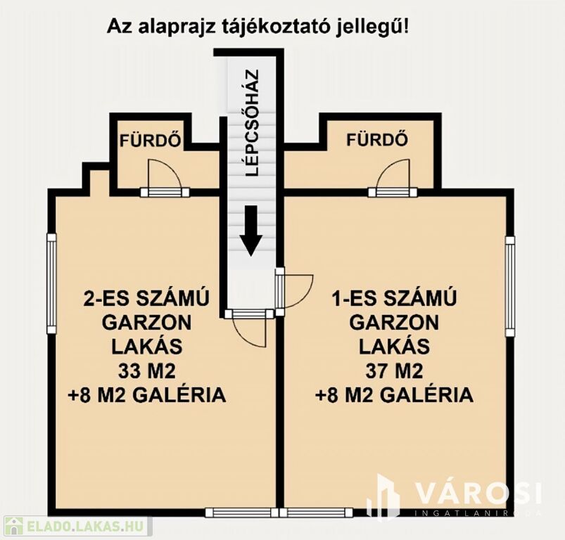 Figyelem! Jelen hirdetés az alaprajzon szereplő 1-es számú garzon lakásra vonatkozik. Eladó az alaprajzon szereplő 2-es számú garzon lakás is 54,9 millió forintos áron.