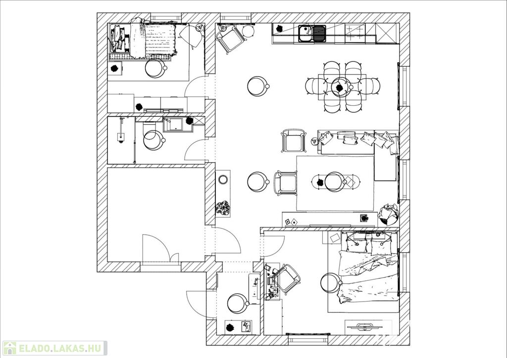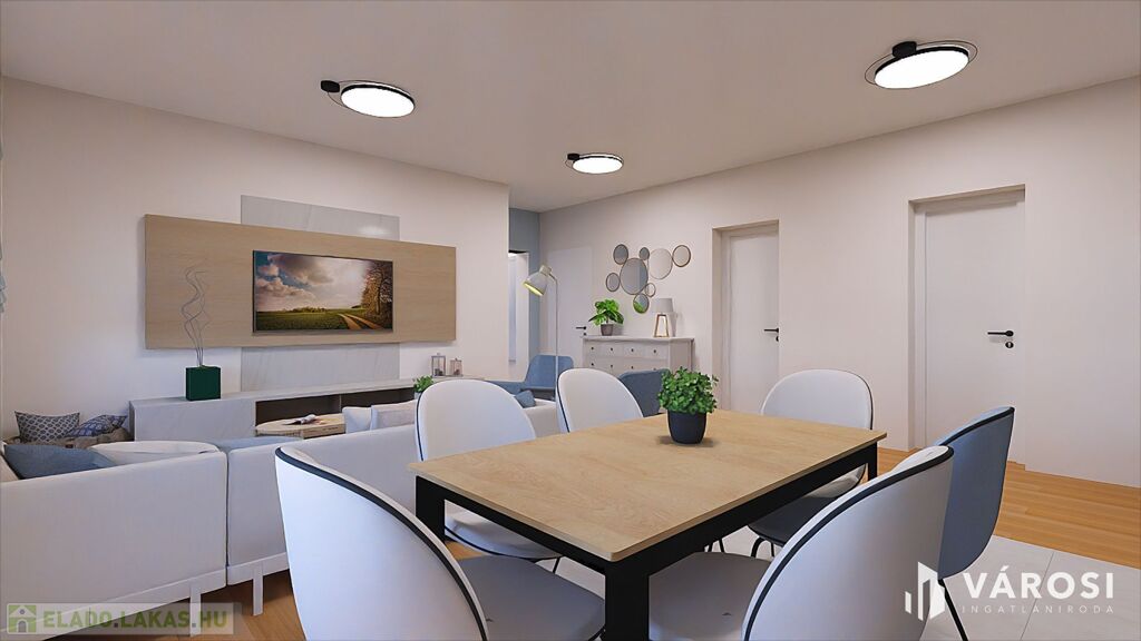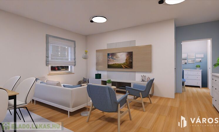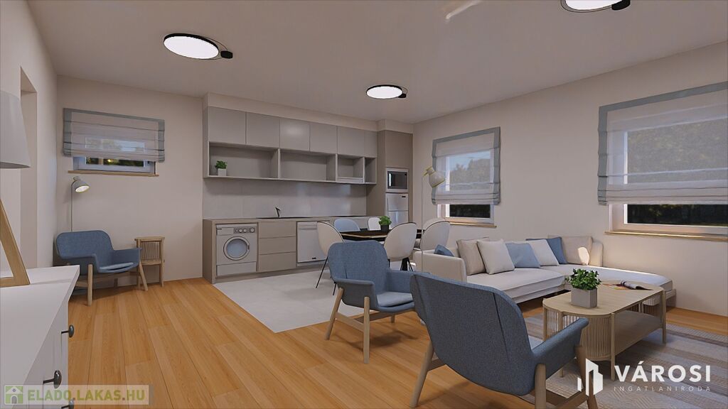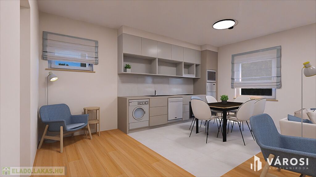Az ár tartalmazza a burkolatokat, a konyhabútort gépesítve, mosógép nélkül.