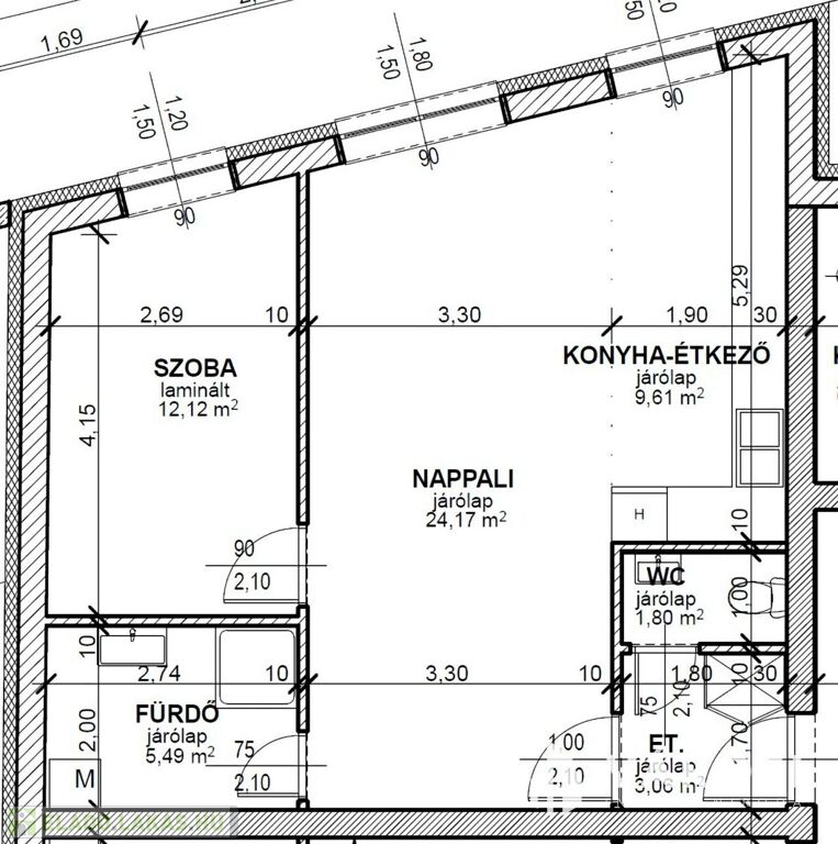 - Elrendezés: amerikai konyhás nappali, hálószoba, fürdőszoba, külön WC, előtér és terasz