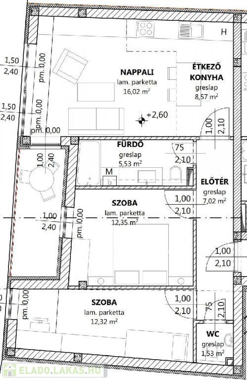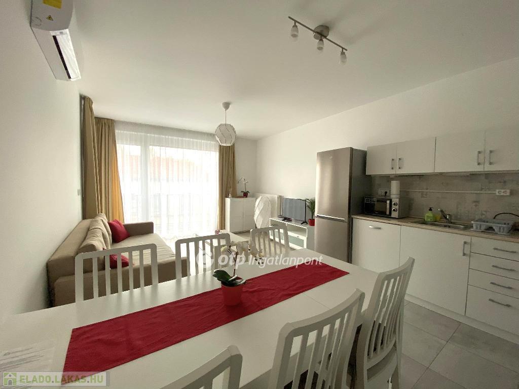 A lakás átlag feletti minőségi és esztétikai szintet képvisel, a mérete 66 m2. Helyiségei: 2 hálószoba, amerikai konyhás nappali, fürdő, wc, közlekedő, erkély. Az épület 2019-ben épült, lift van.