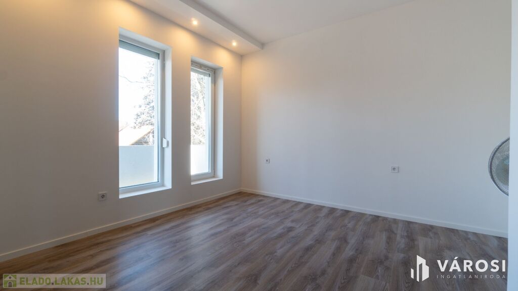 Ez a hirdetés a 2 lakásos ingatlan emeleti lakására vonatkozik. A földszinti lakás is eladó 85.990.000 forintos áron, melyhez 190 m² privát kert is vásárolható.