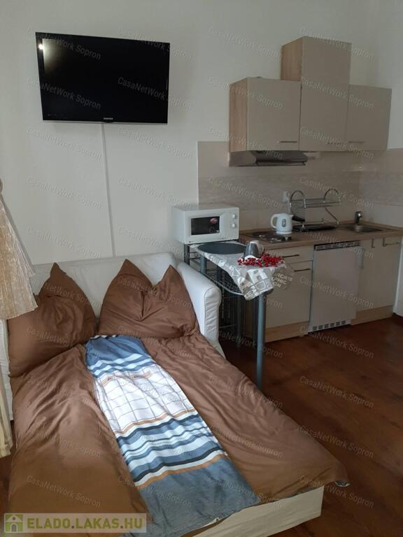 Kettő az egyben!Két első emeleti kis lakás, Sopron belvárosához közel eső részen, egy helyrajzi számon eladó.A két lakás összesen 68 m2 és egy közös használatú előtér választja ketté. Mindkét lakás amerikai konyhás-hálóteres kialakítású, a fürdőszoba WC-vel közös helyiségben kialakított. A belmagasság (3,2 m) ellenére nagyon kicsi a fűtésszámla, ami részben a vastag falaknak köszönhető. A polgári jelleg nemcsak költséghatékonysága miatt, atmoszférájában is az ingatlan vonzerejét erősíti. Jelenlegi tulajdonosa airbnb-re hasznosította, mely tartós bevételi forrást biztosított számára, költözés miatt viszont most kénytelen megválni a lakásoktól. A teljes bútorzat a vételár része.A lakáshoz tartozik egy kis méretű tároló és egy padlásrész mely az első, utcafronti lakásrész felett található- Igy lehetőség nyílik az ingatlan esetleges bővítésre is.A társasház 6 lakással rendelkezik, jelentós megtakarítással rendelkezik mely a jövőben tervezett felújításokat fedezi.Az udvar fel lett osztva a lakások között, így ehhez az ingatlanhoz is tartozik egy kb. 35 m2 nagyságú kis kertrész, ami saját célra alakítható. Rövid időn belül birtokba vehető.A belváros csak egy séta, mégis nyugodt környék.
