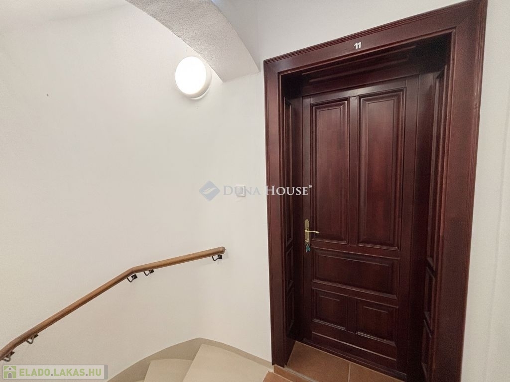 A 11 lakás: A második emeleti ingatlan 59 m2 alapterületű, amerikai konyhás nappali, egy hálószoba, gardrób és fürdőszoba kapott helyet benne, a hangulatos lakás tágas, világos, délnyugati tájolású, kilátással a sétáló utcára...
