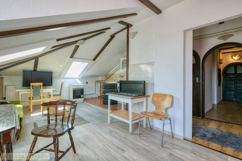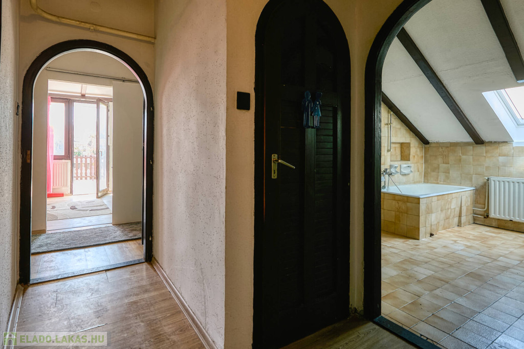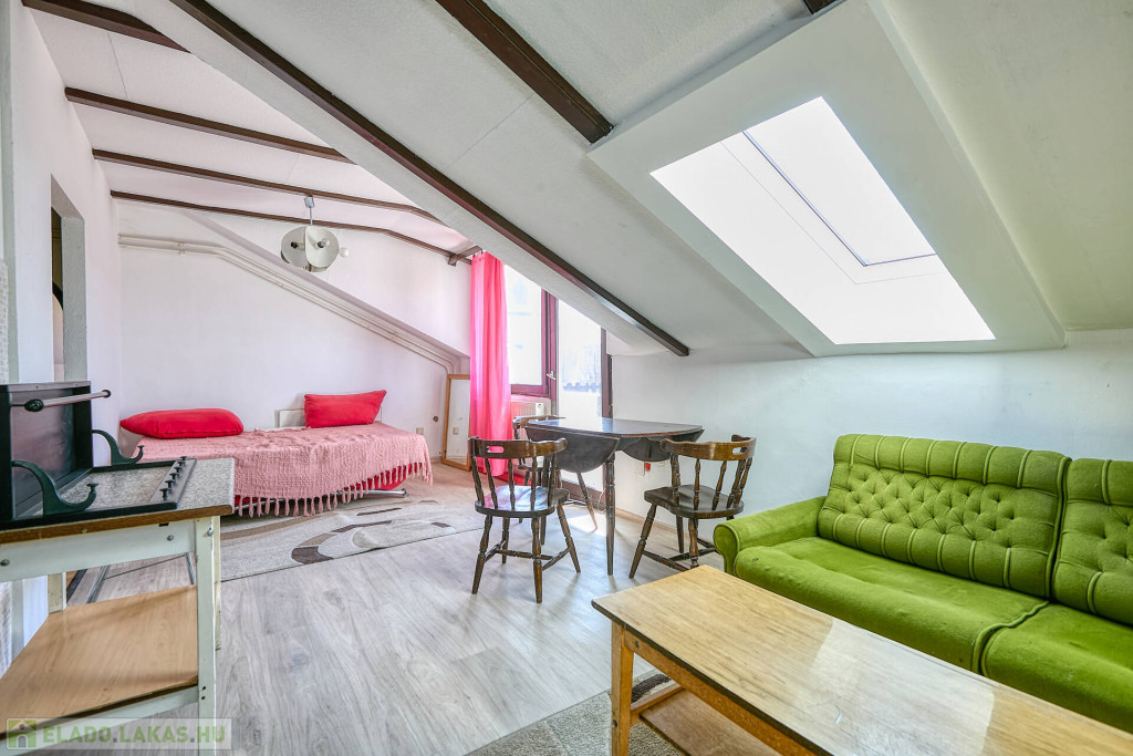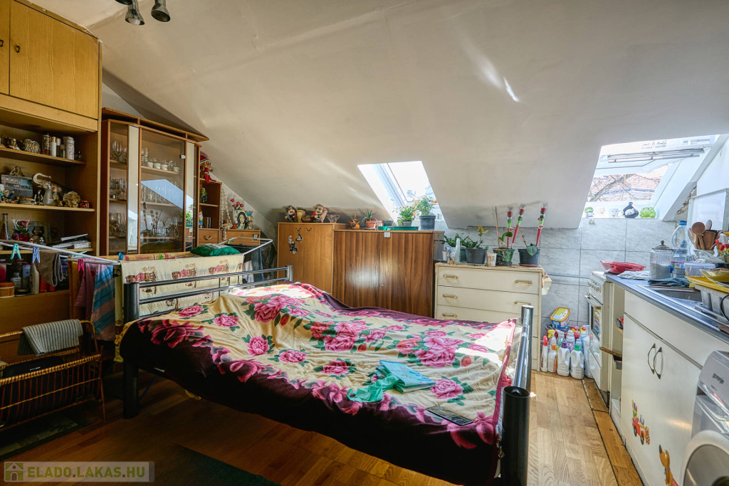 Bruttó 130 m²-es, tetőtéri lakás egy 4 lakásos, rendezett társasház első emeletén, 16 m²-es, déli tájolású terasszal, ahonnan csodás kilátás nyílik a Lővérekre.