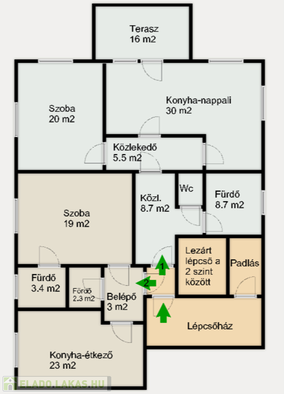 Két külön bejáratú lakásként funkcionál (igény szerint egybenyitható)
