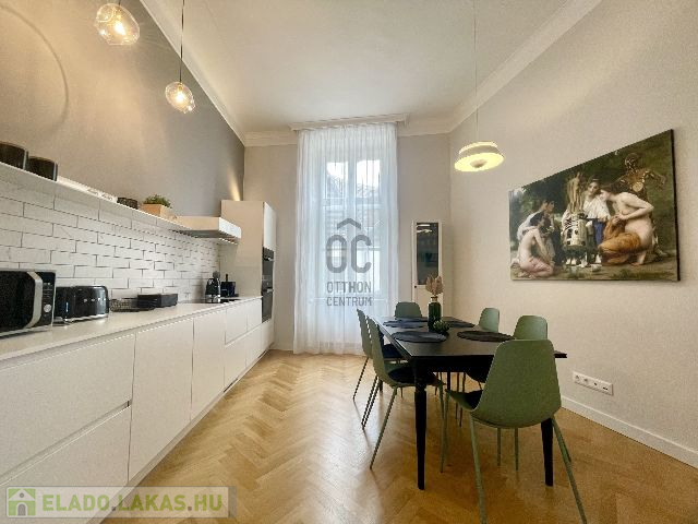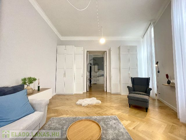 A neobarokk stílusú műemlék épület első emeletén található lakás, 70 m2 alapterületű, amely tágas nappali, konyha-étkező, egy hálószoba, fürdőszoba, külön mellékhelyiség és háztartási helyiség kialakítású, egy minden igényt kielégítő és magas minőségben felújított ingatlan.