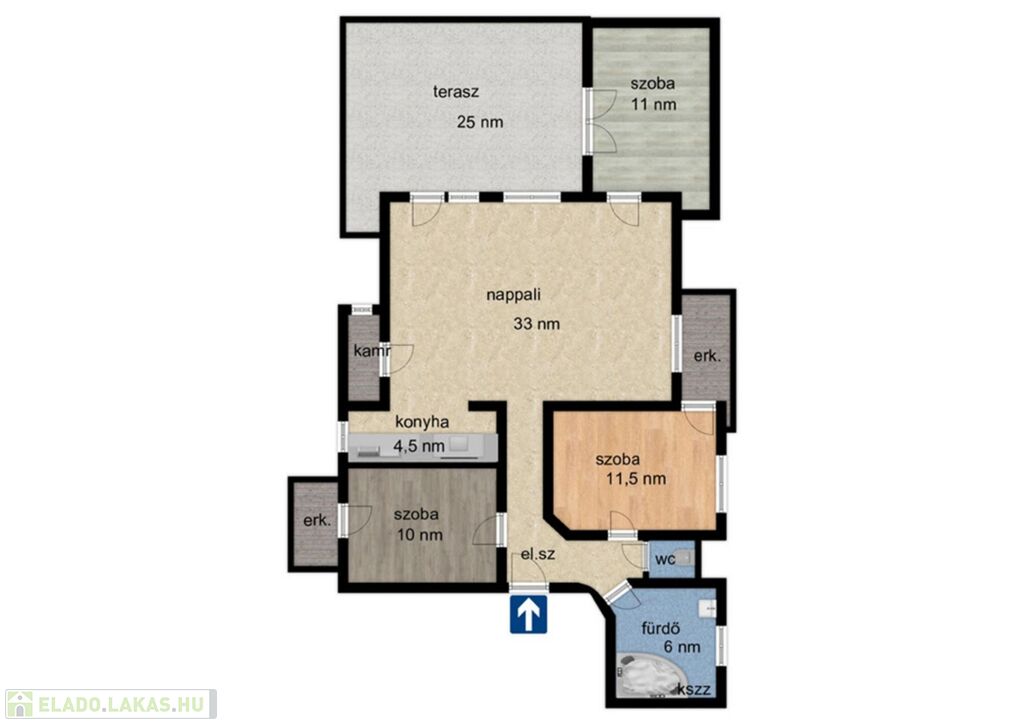 - 25 nm-es hatalmas terasz, napvédő rolóval.
