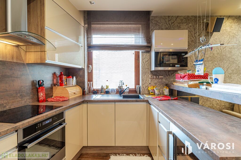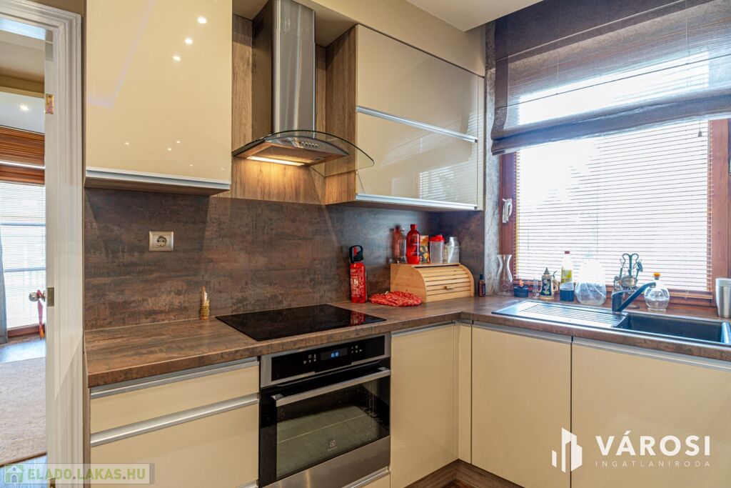A lakás 1 db amerikai konyhás nappalival, 2 db hálószobával, 1 db fürdőszobával, külön Wc-vel, kamrával, közlekedővel, erkéllyel rendelkezik. Az ingatlan elhelyezkedésre, kialakítása miatt, maximálisan kiemeli ezt az ingatlant az átlagos társasházi lakások sorából és egyedülálló választássá teszi azt. További előny, hogy az eladó 2018 - ban kicserélte a nappaliban és a szobákban, valamint az előtérben és közlekedőben a burkolatokat. És az ingatlan legutolsó esztétikai felújítása 2022-ben volt.