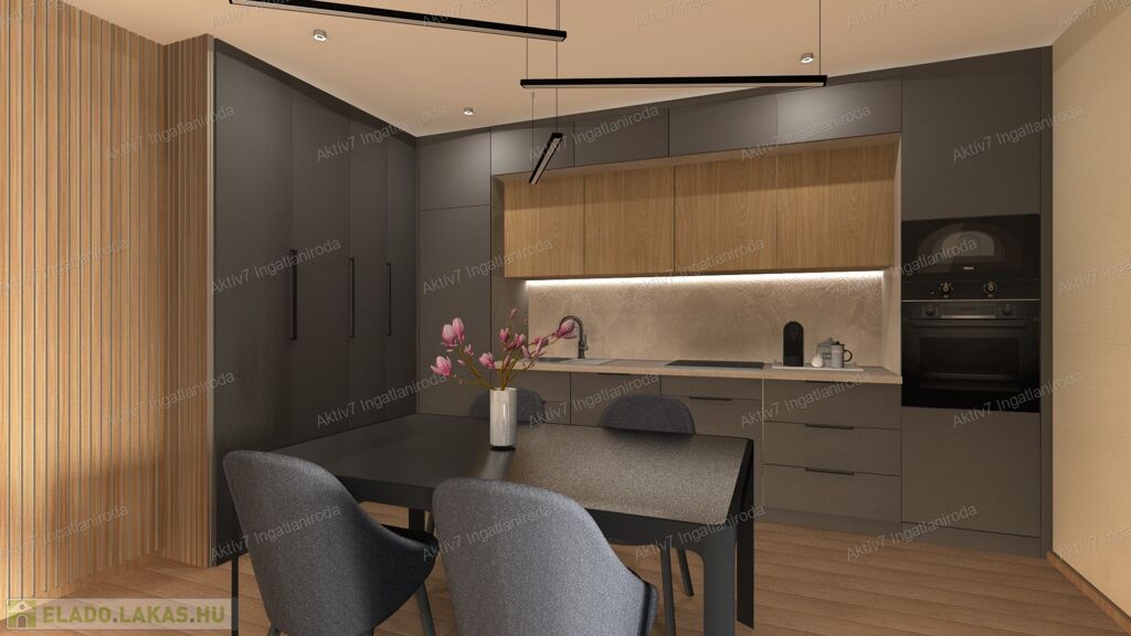 Teljesen készen van, burkolva, festve, elektromos redőnnyel, beltéri ajtókkal, szaniterekkel felszerelve kínáljuk. A vételár a konyhaszekrényt NEM tartalmazza.