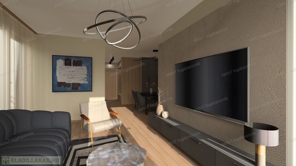 A szóban forgó lakás harmadik emeleti, 63,48 m2 területű, amerikai konyha nappali +2 hálószobás, a hozzá tartozó 7,64 és 6,23 m2 erkélyekkel (a fotók között található alaprajz szerint).