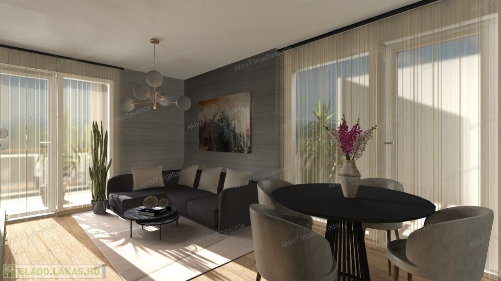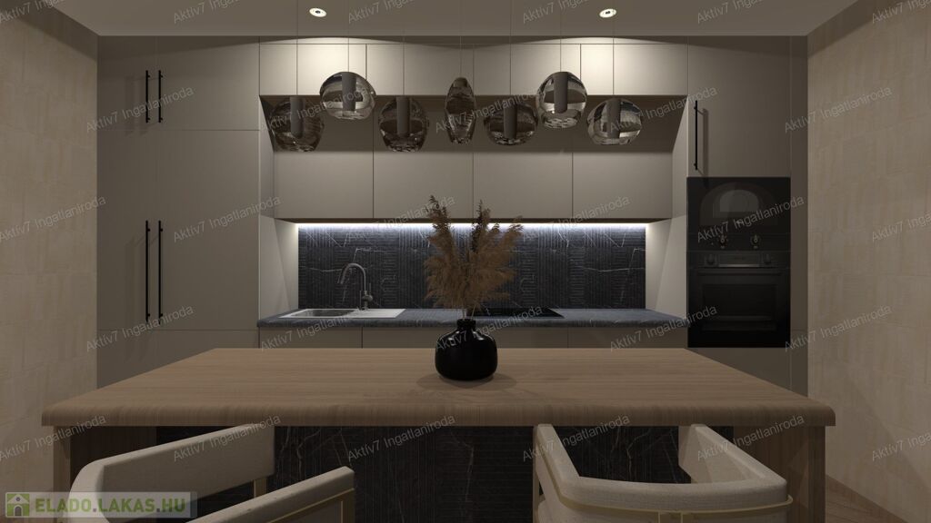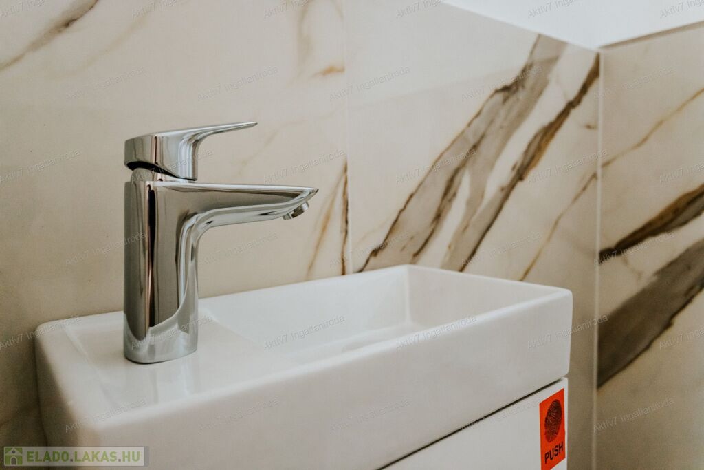 Teljesen készen van, burkolva, festve, elektromos redőnnyel, beltéri ajtókkal, szaniterekkel felszerelve kínáljuk. A vételár a konyhaszekrényt NEM tartalmazza.