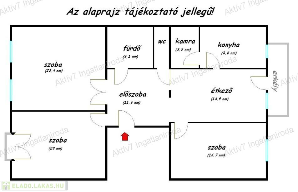 A tájékoztatás nem teljeskörű. A fotók széles látószögű géppel készültek, a helyiségek várható méretéről a leírás és / vagy az alaprajz nyújt tájékoztatást.