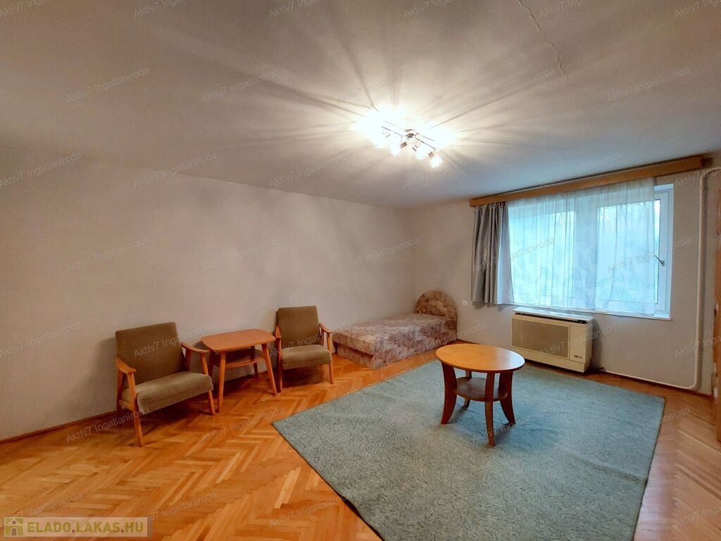 - Egy nagy méretű szoba és egy tágas konyha: a konyha akár szobává alakítható, így amerikai konyhás nappali + egy külön szoba is kialakítható.