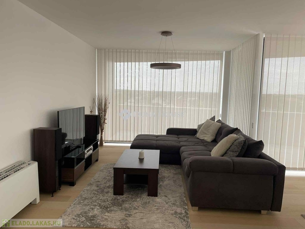 A lakás tágas nagy terekkel rendelkezik, a térhatást tovább növeli, a terasz felől lévő hatalmas, teljes falas üvegfelület.