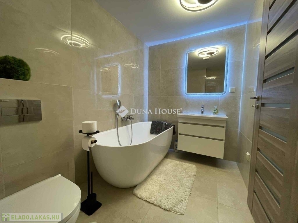A lakás kilátása panorámás, a belső parkosított kertre, és a mesterségesen kialakított tóra néz. Reggeli kávéját, nyugodt csodás környezetben fogyaszthatja el.