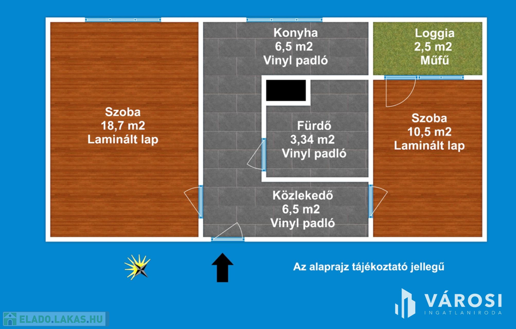 A lakás 1 db nappalival, 1 db hálószobával, 1 db fürdőszobával Wc-vel, közlekedővel, loggiával rendelkezik. Az ingatlan elhelyezkedésre, kialakítása miatt rendkívül sokrétű a felhasználása - akár lakás, vagy befektetési célra -, amely maximálisan kiemeli ezt az ingatlant az átlagos lakások sorából és egyedülálló választássá teszi azt.