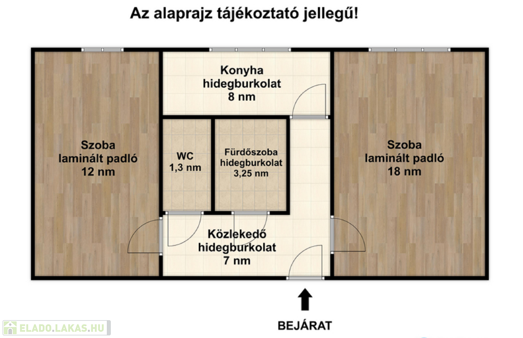- Laminált padló a szobákban, a többi helyiség hidegburkolatos.
