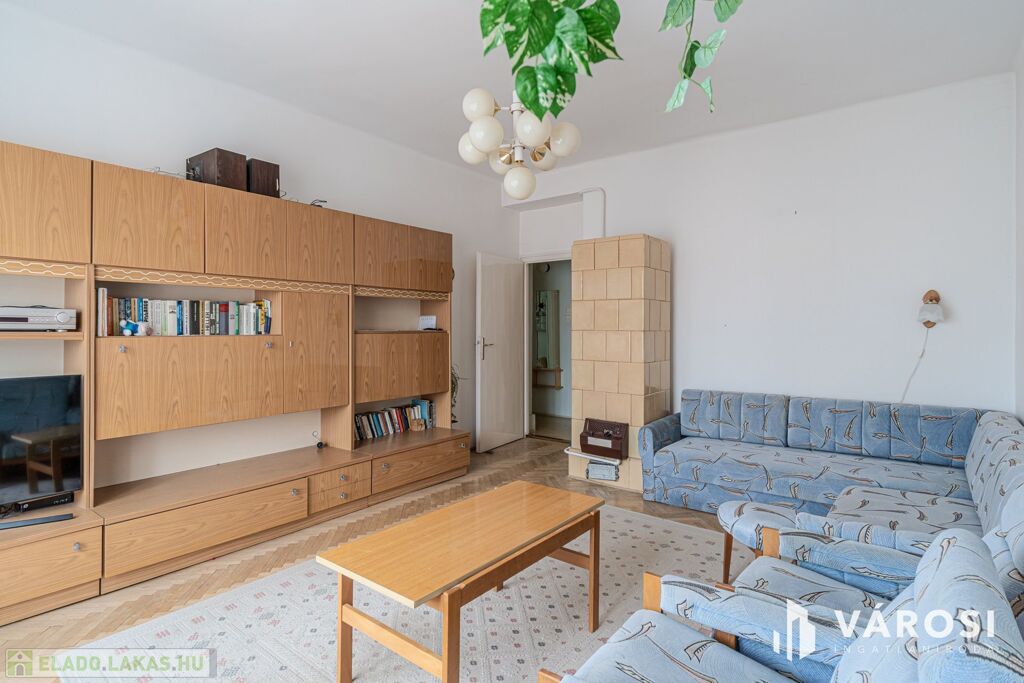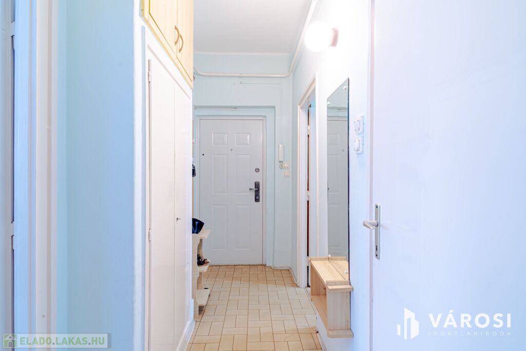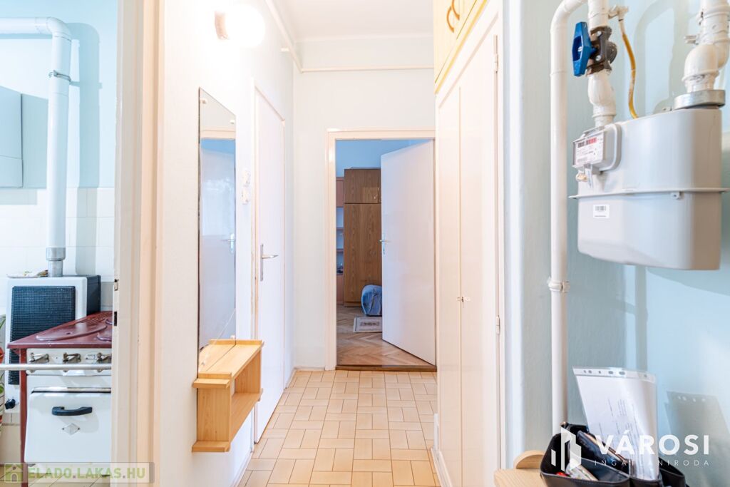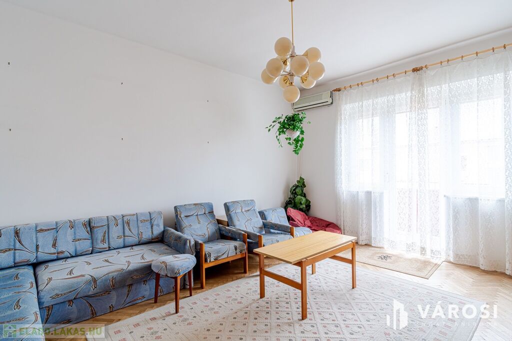 A lakás a 4. szinten helyezkedik el, zárószinti (nincs lift), így nincs felső szomszéd, a tető viszont felújított. Elosztása kedvező: két külön nyíló szoba, erkély, jól alakítható terek.