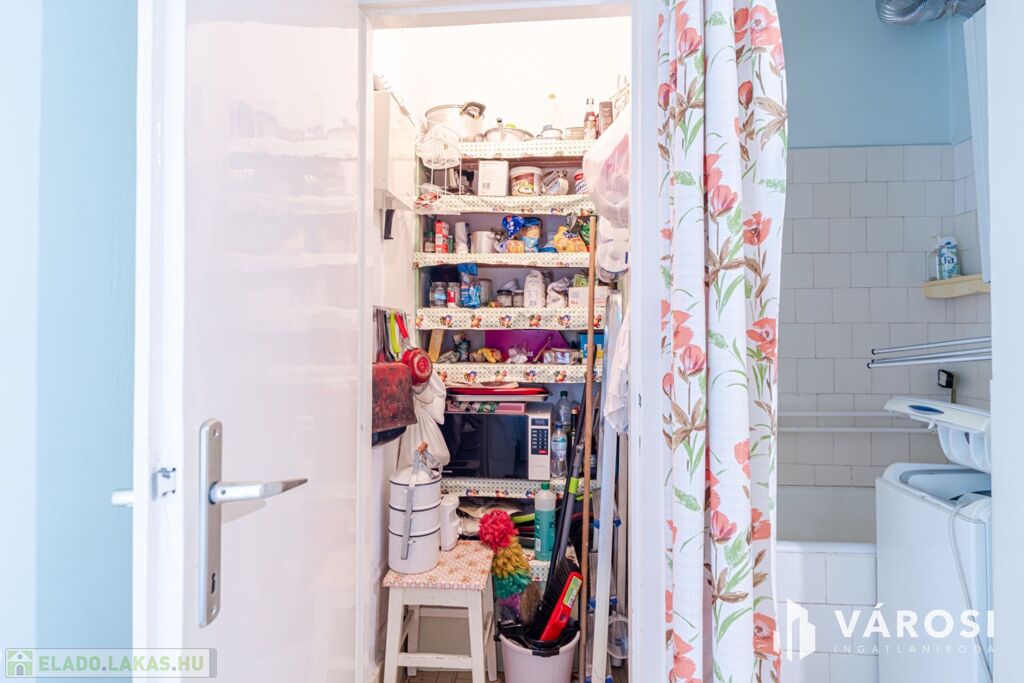 Fontos tudni: a konyha és a fürdő jelenleg egy légtérben található. Az átalakítás során a kamra bevonásával külön zuhanyzós fürdő kialakítható.