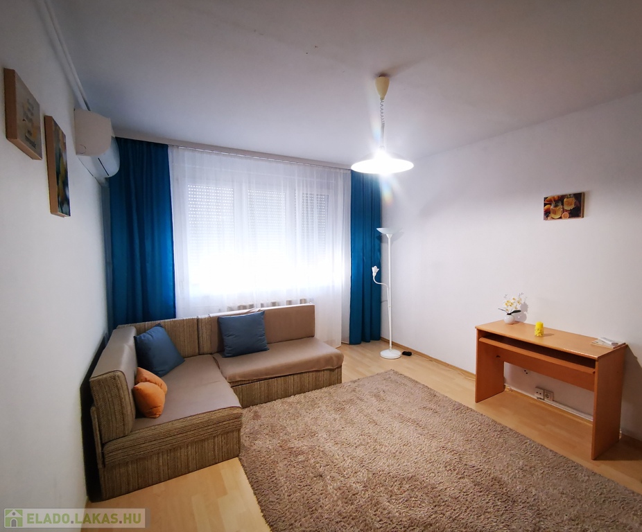 Szeged-Felsőváros kitűnő közlekedésű és ellátottságú részén, a Lugas utcában, negyedik emeleti, 60 nm-es, három külön bejáratú szobás, frissen festett, gépesített, bútorozott, klimatizált (új hűtő-fűtő), kedvező rezsijű panellakás, akár megbízható bérlővel együtt is, kedvező áron eladó. A nappali északnyugatra, a két háló és a konyha délkeletre néz. Ideális befektetésre, saját otthonnak egyaránt.