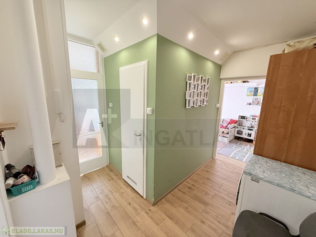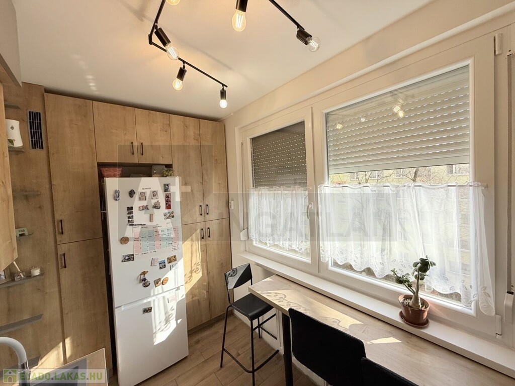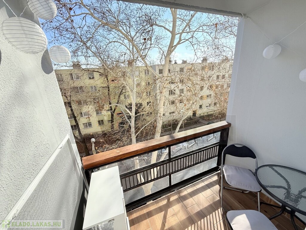 A 10 emeletes ,felújított liftes , panel építésű társasház rendezett , jó lakóközösséggel .