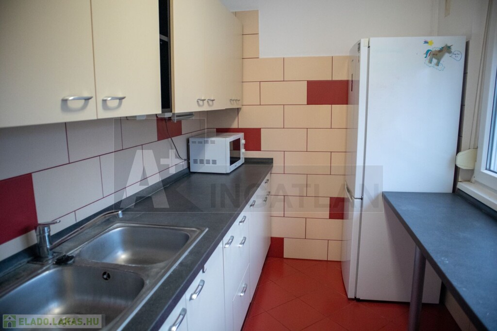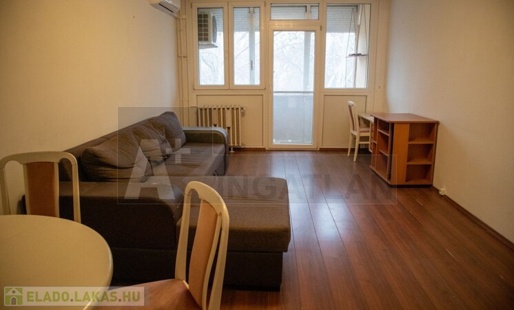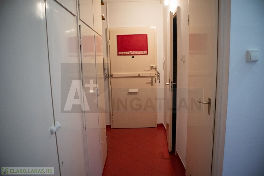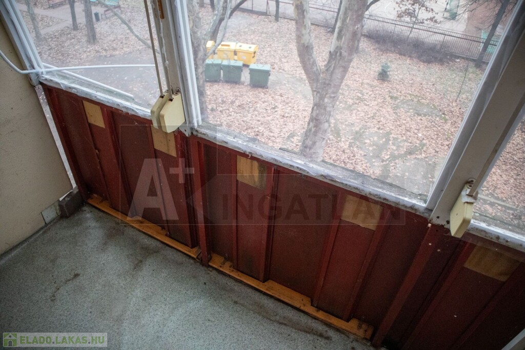 Szegeden az újszegedi városrészben, a Vedres utca nem forgalmas részében eladó ez a két szobás lakás. Az ablakok lombkorona szinten helyezkednek el, és zöld területre néznek, így kimondottan csendes.