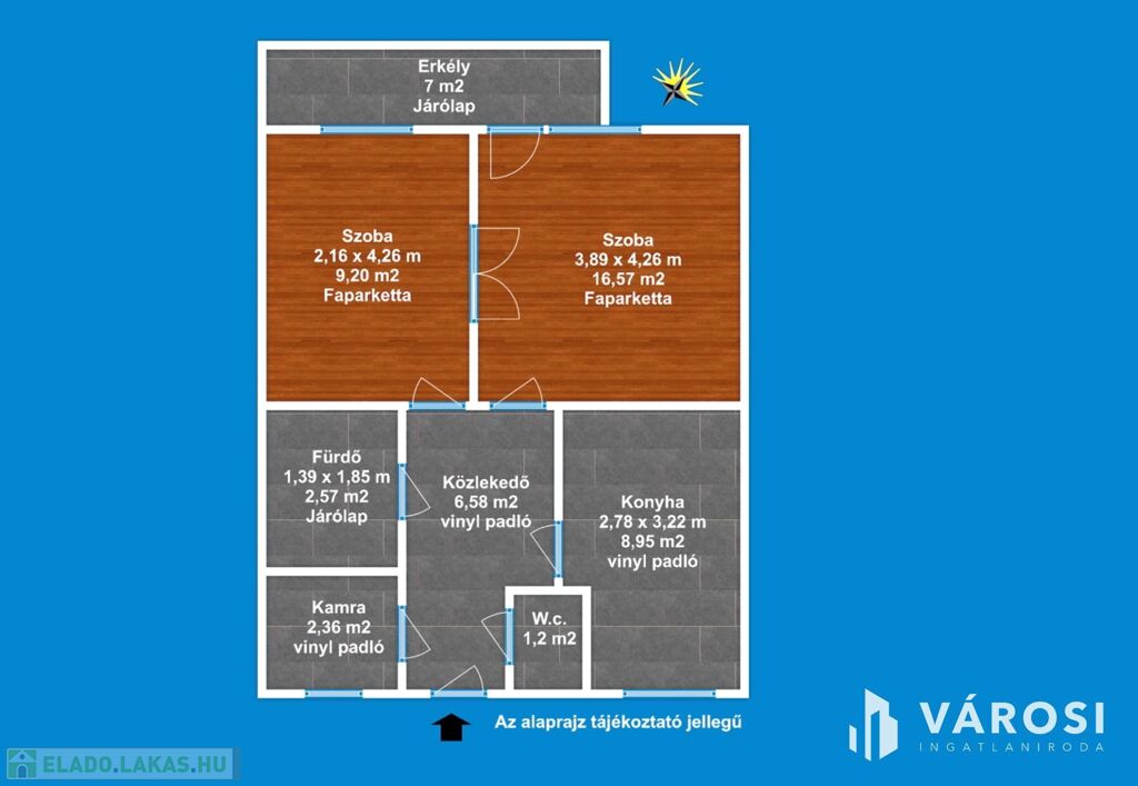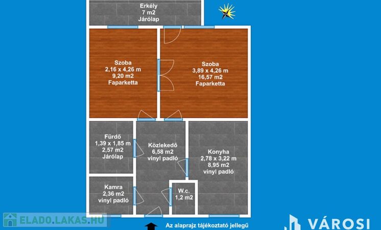 A lakás délkeleti tájolása, miatt rendkívül napfényes ingatlan.