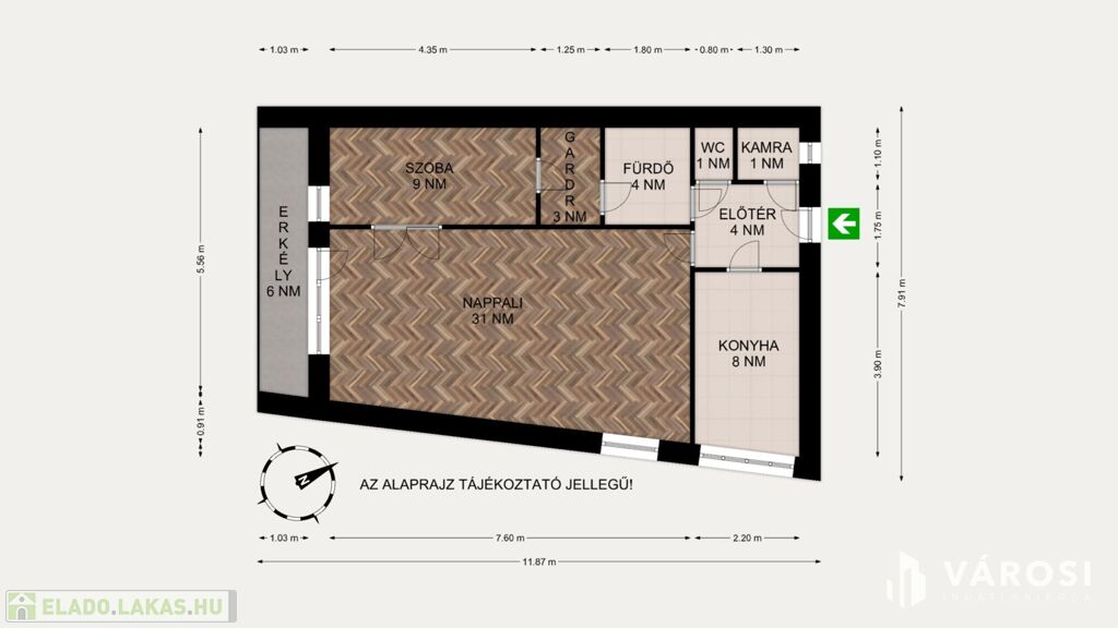 Méret: 61 négyzetméter