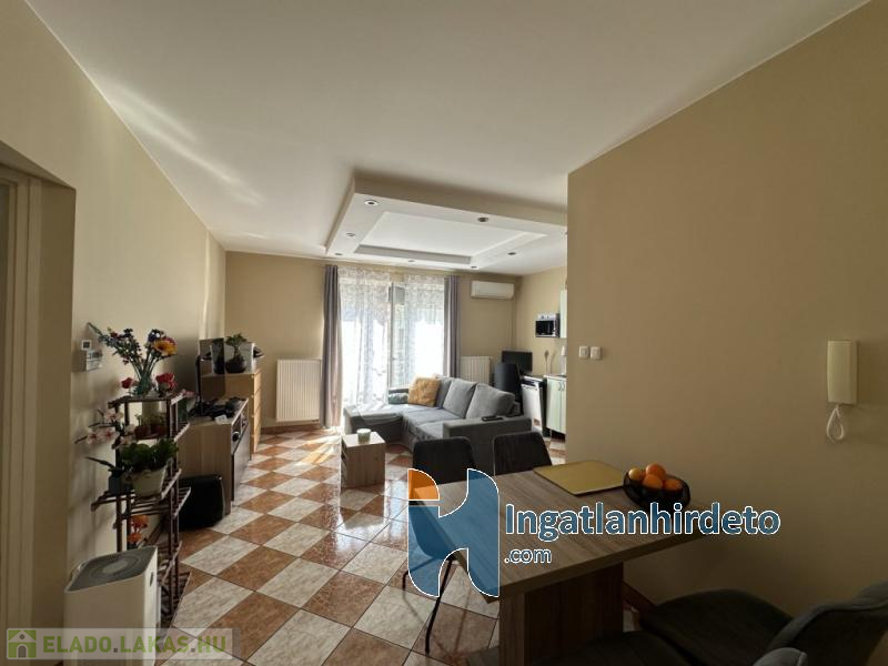 Elhelyezkedése: Társasház Emeleti elhelyezkedés: Emeleten Emelet száma: 1 Épület emeleteinek száma: 2 Állapota: Újszerű Komfort besorolása: összkomfortos Építési éve: 2000 Alapterülete: 49 m2 Szobák száma: 1 + 1 szoba Közművek: Gáz, Víz, Villany Gázellátás: Vezetékes Vízellátás: Vezetékes víz Melegvíz-ellátás: Gázkazán Áramellátás: 230V Fűtés módja: Gáz Fűtés típusa: Cirkó Homlokzat állapot: Újszerű Építési mód: Tégla Tető formája: Magas Tető anyaga: Cserép Parkolási lehetőség: Telken Kilátás: Utcafronti kilátás Jellemzői: Alacsony rezsi, Csendes környék, Jó közlekedés, Redőny, Légkondicionáló, Étkező, Amerikai konyha, Beépített konyhabútor, Kaputelefon Energetikai besorolás: B Tv, Internet: Kábeltévé Közelben: Iskola, Óvoda, Villamos, Vasútállomás, Autóbuszállomás, Helyi autóbuszállomás Terhelések: Tehermentes ingatlan Eladásra vonatkozó információk: Az ár tartalmazza a teljes berendezést, Azonnal beköltözhető